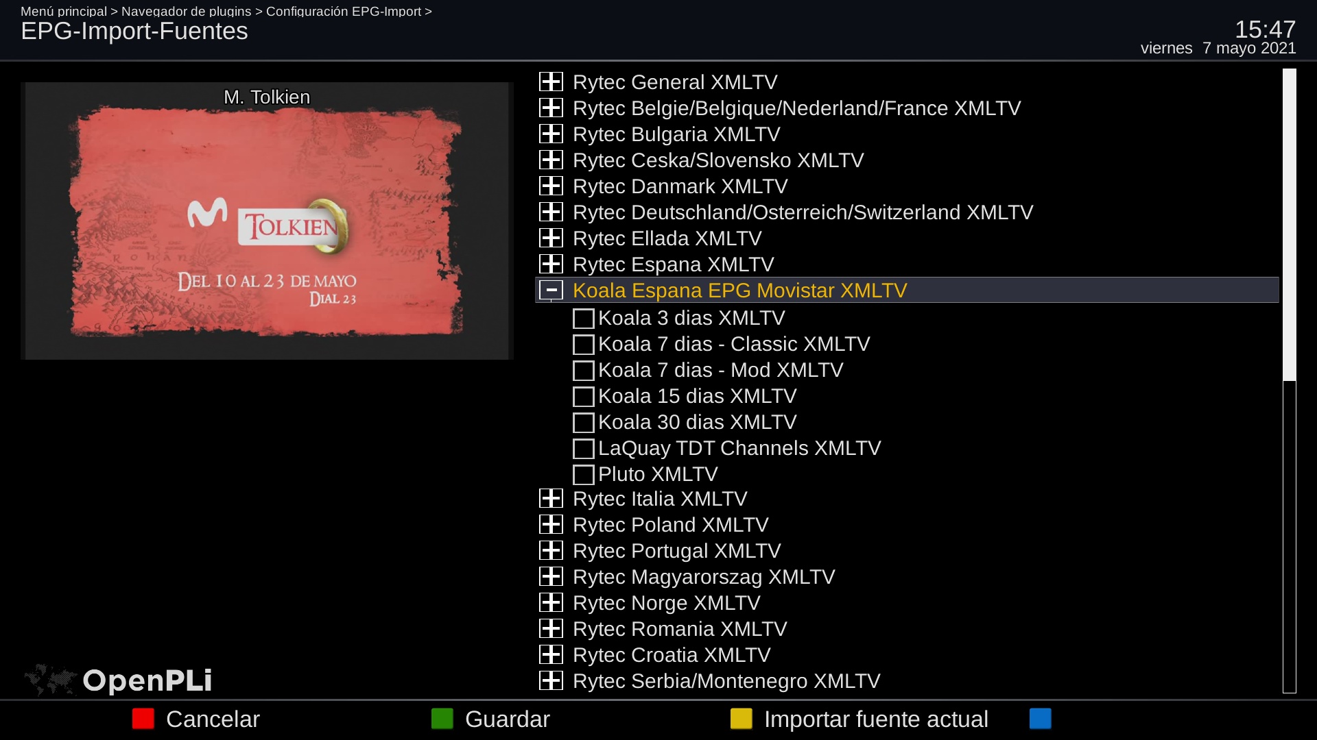 KOALA epg forma parte de los sources oficiales de EPGIMPORT simplemente descargue el epg desde sus fuentes los dias que desees: