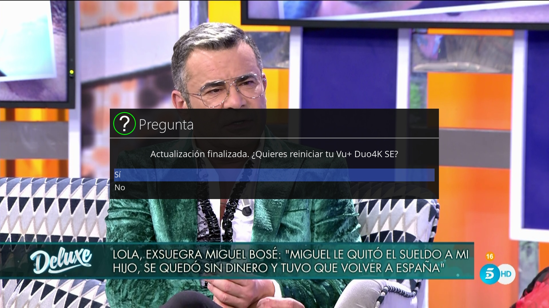 4. Al finalizar pulsamos OK y seleccionamos en si para reinciar el receptor y eso seria todo