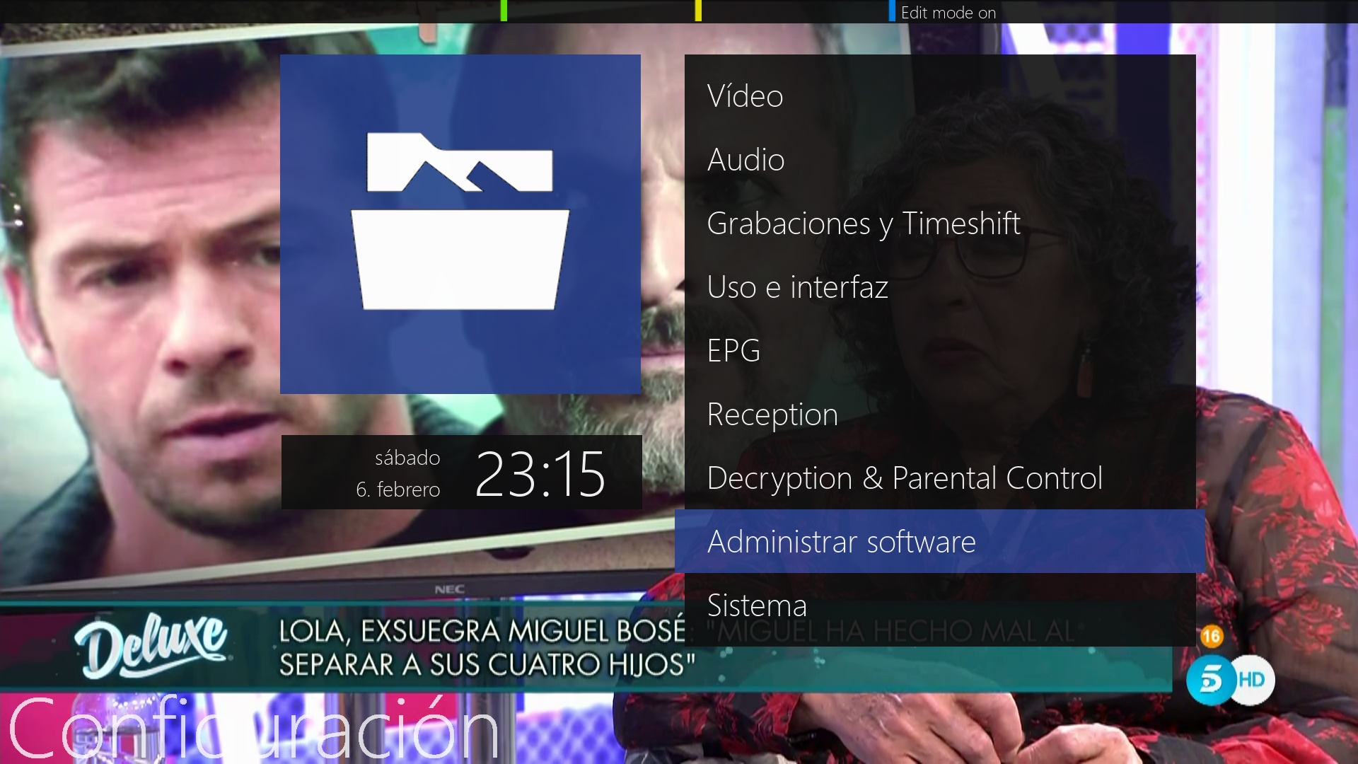 - Splash: imagen de arranque del receptor