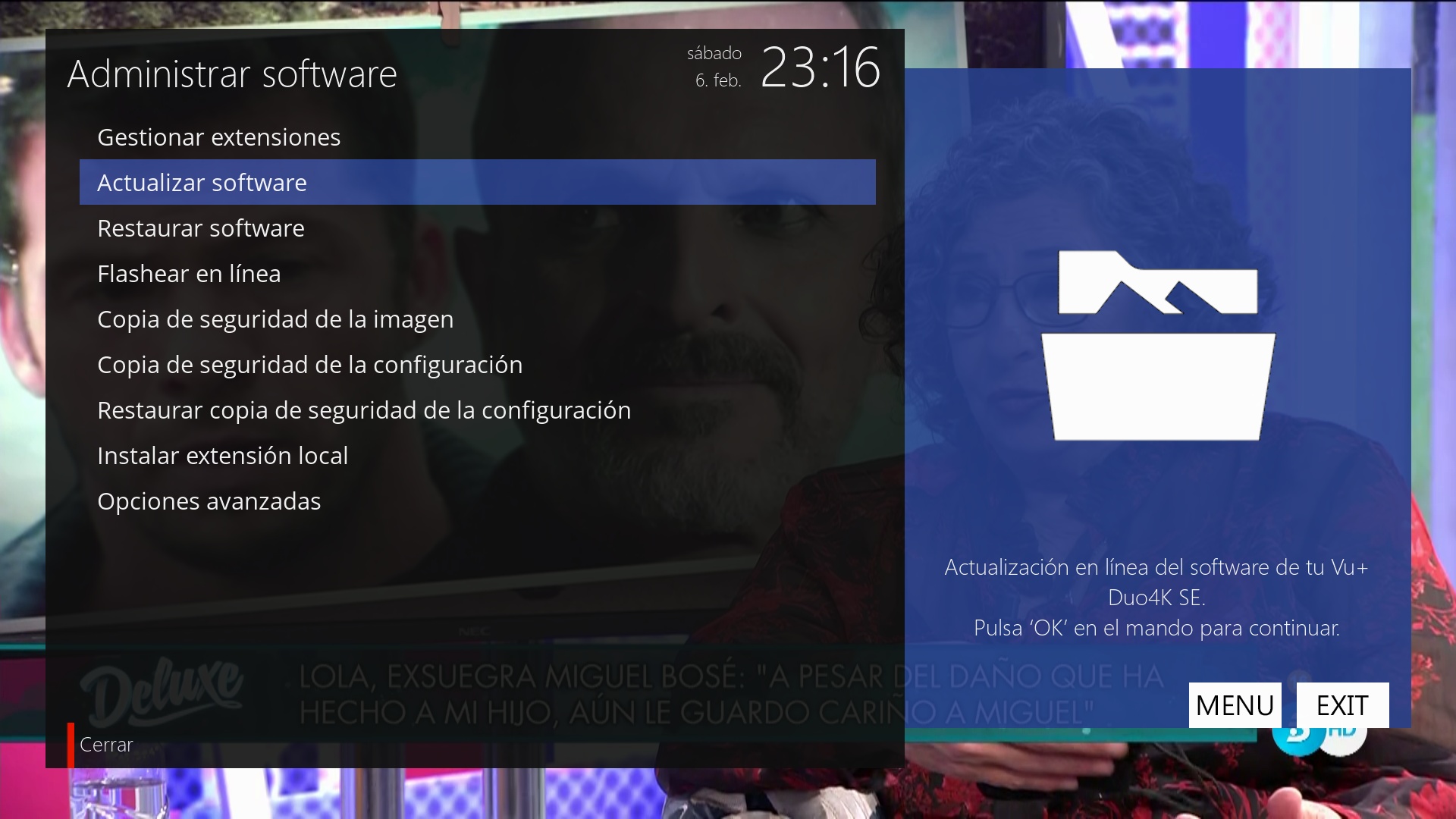 Importante: En este tipo de actualización no se pierde nada que tengamos nosotros instalado o configurado en la imagen openatv.