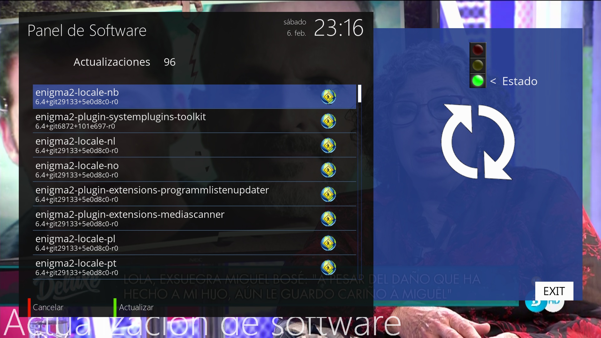 La imagen OpenATV para receptores enigma2 a traves del Administrador de software permite la actualizacion de paquetes instalados que tienen una version mas actual disponible en el repositorio de la misma.