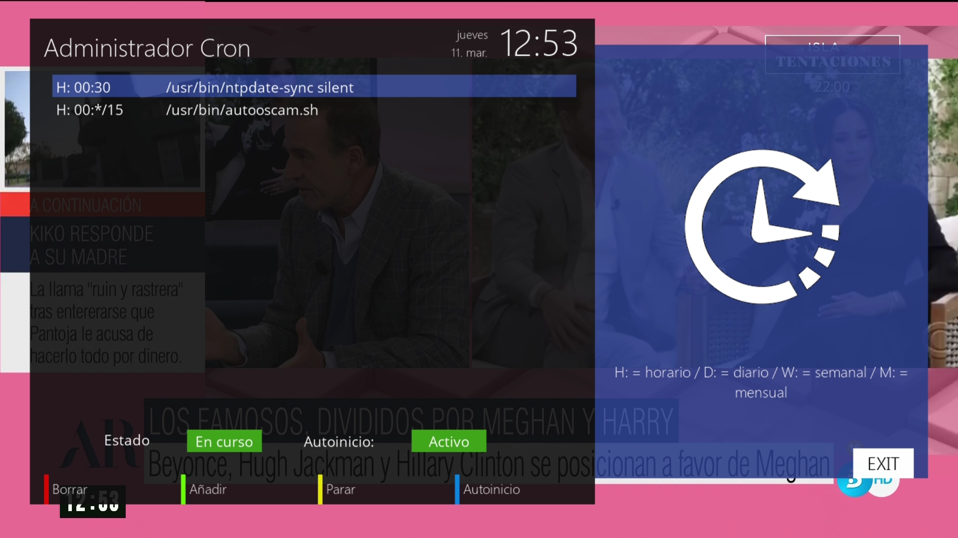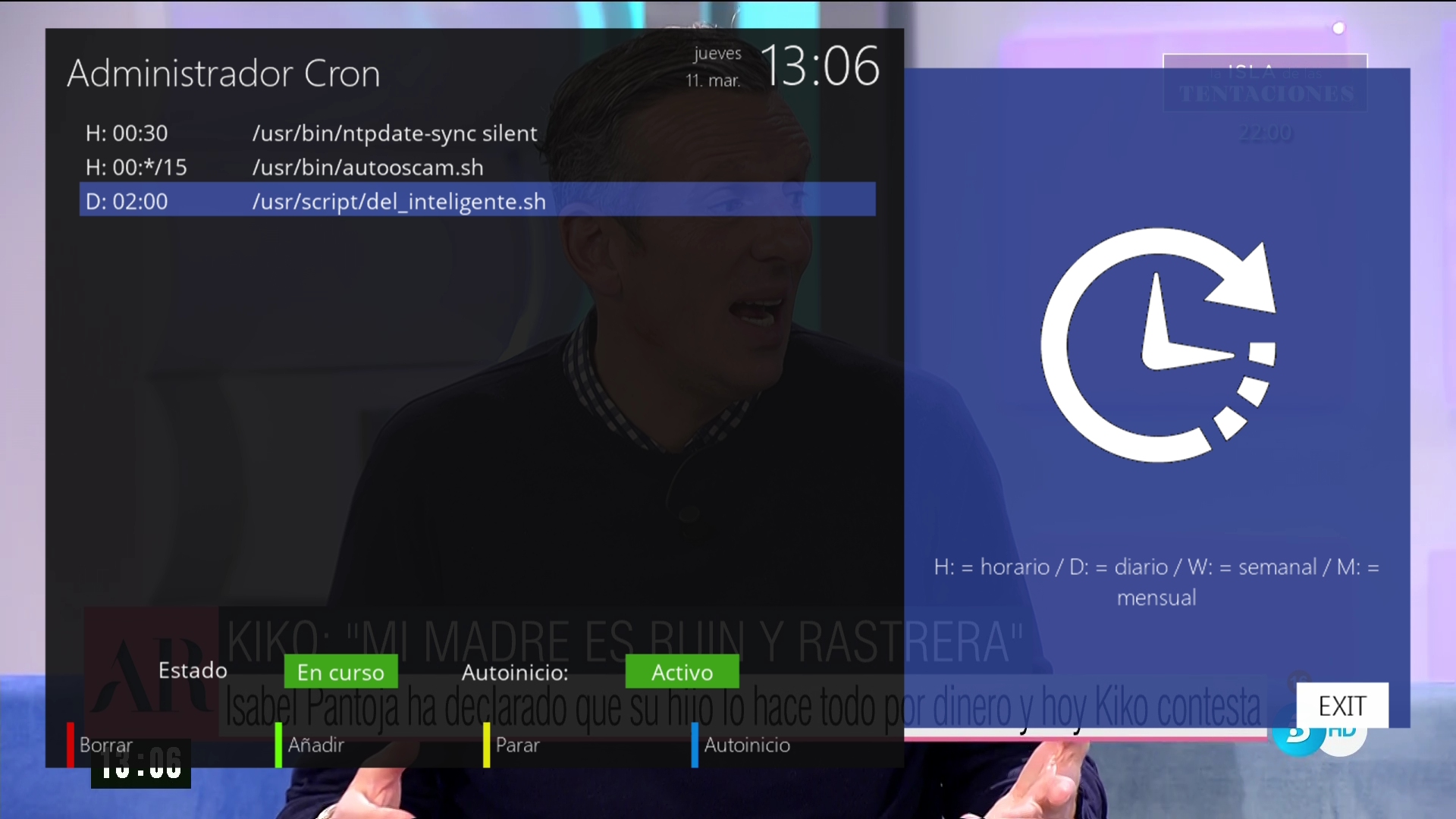 Cron es una aplicacion que nos permite ejecutar procesos en segundo plano cada x tiempo, vamos a ver como añadir la ejecucion de un comando con cron en imagen openatv.
