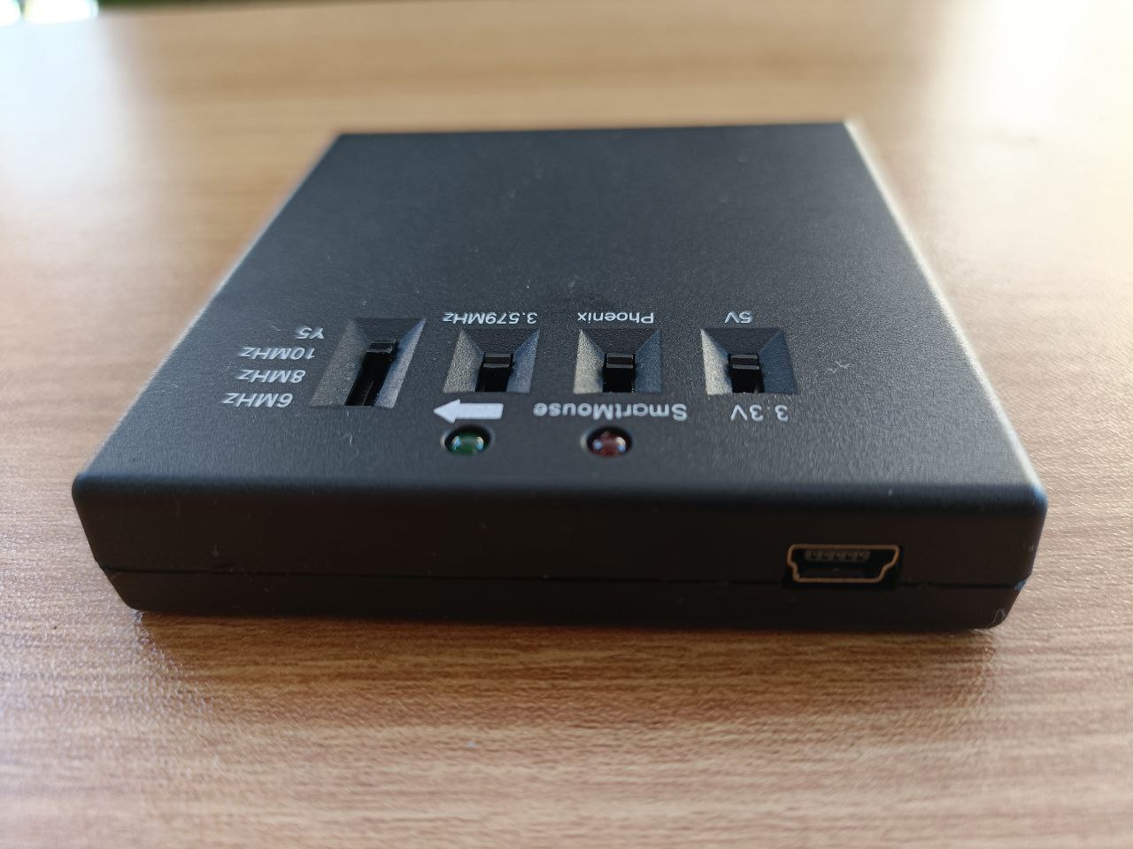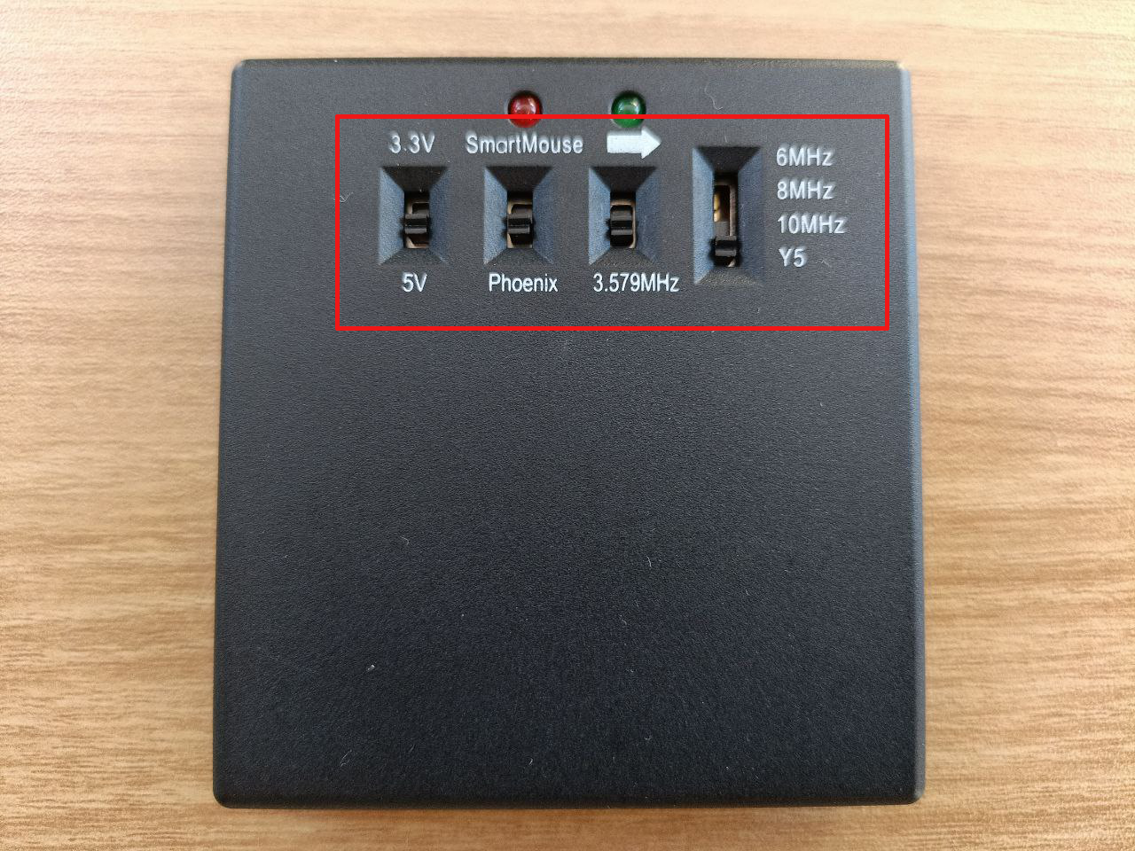 - Modo: Este interruptor te permite cambiar entre los modos Phoenix y Smartmouse. Estos son dos protocolos diferentes para la comunicación entre el lector y la tarjeta inteligente.
