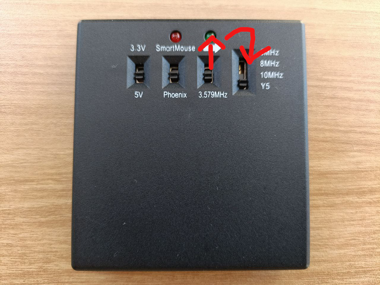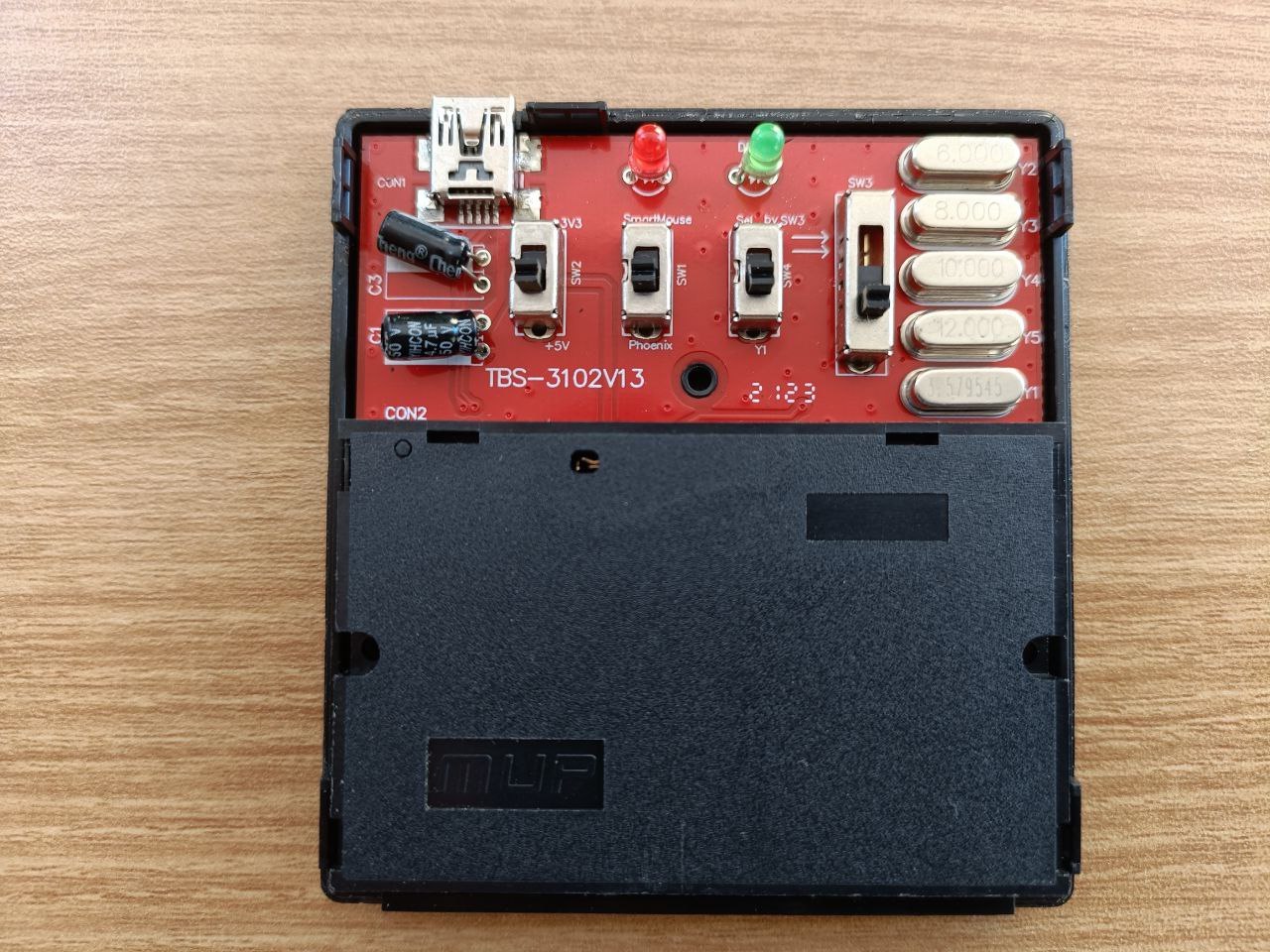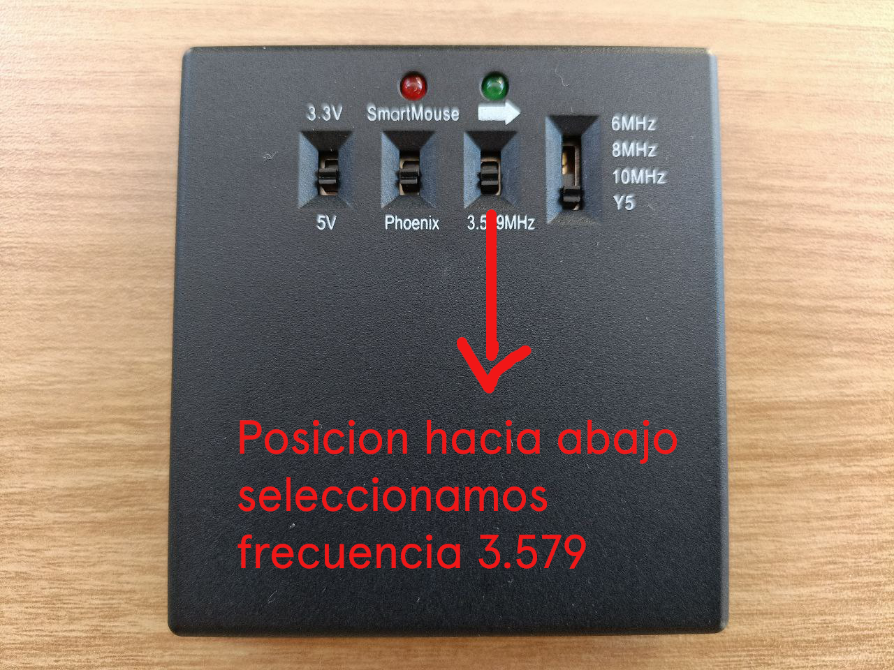 - Frecuencia del Cristal, aunque los tipo de cristales seleccionables pueden variar normalmente se vende con estas selecciones 3.579 MHz / 6 MHz /