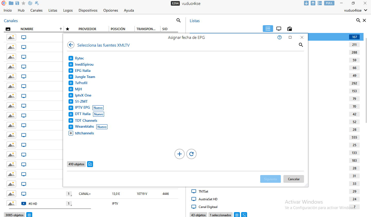 Nota: Para poder usar la opcion de asignar epg a la lista canales es necesario pagar una licencia premium: