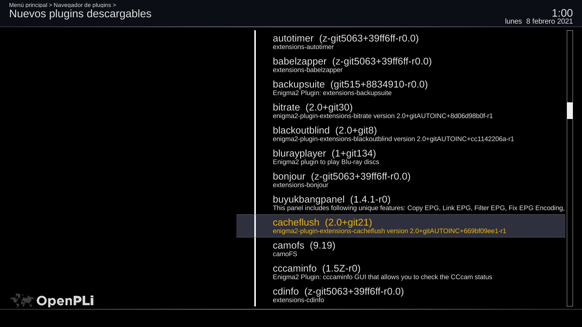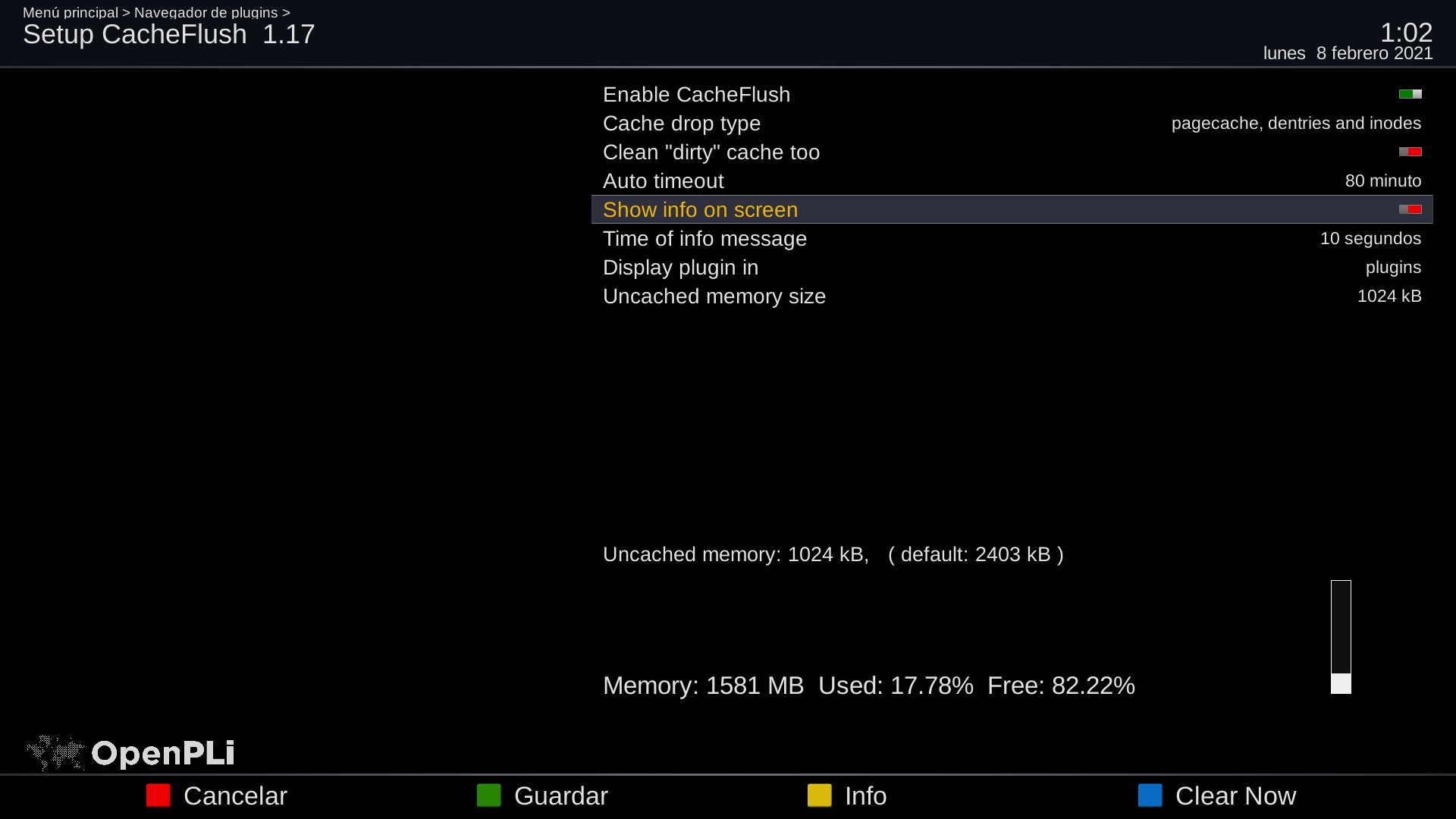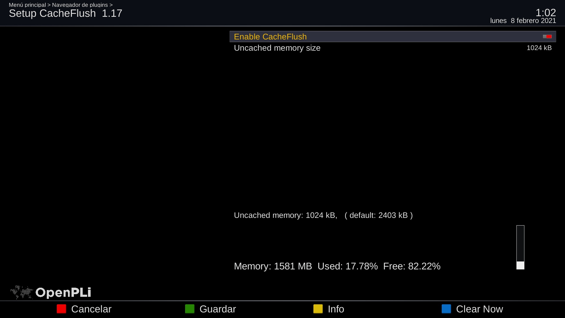 En imagen OpenPLi para receptores enigma2 es posible liberar automaticamente memoria ram con el plugin CacheFlush, el cual se puede instalar desde sus repositorios, en este articulo vamos a tratar su funcionamiento.