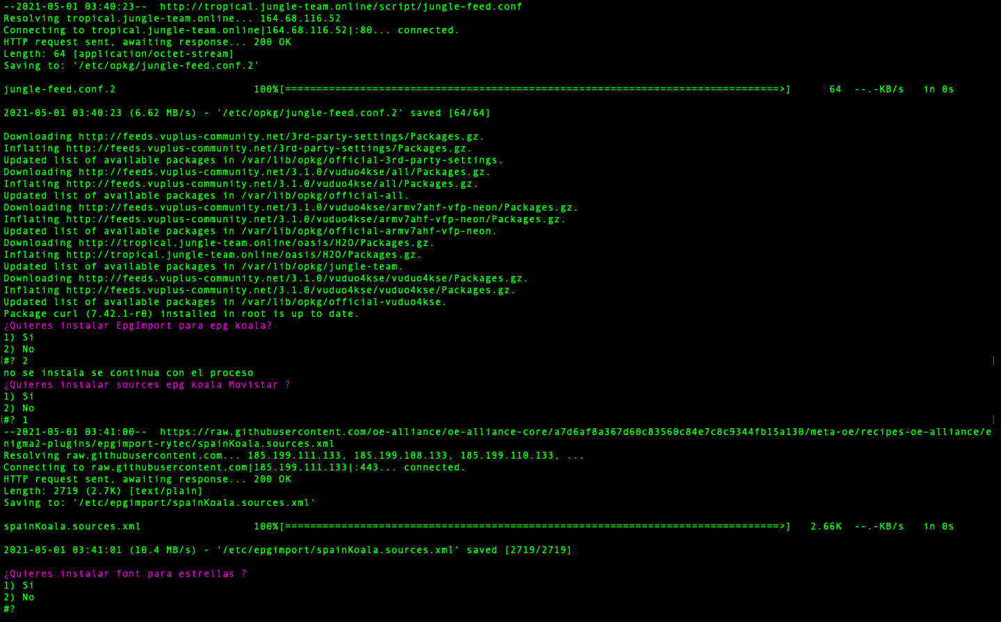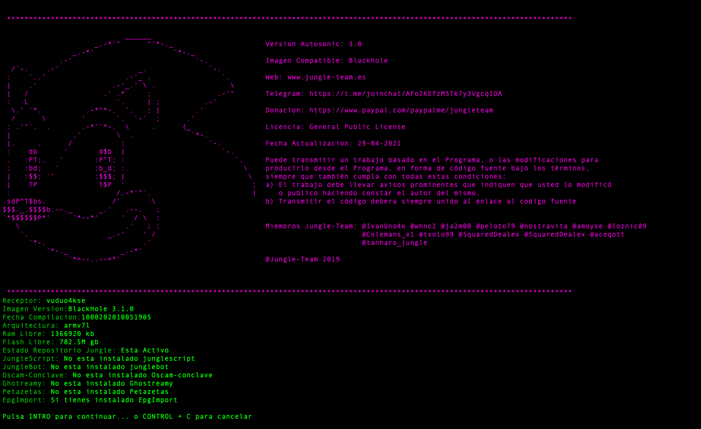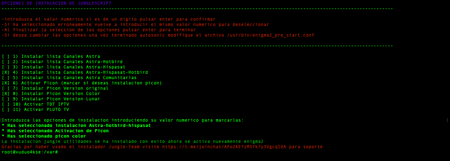 - JungleScript: Auto instalador de listas canales y picones, cuando hay actualizaciones y cambios de canales tu receptor de manera automatica se actualiza, nunca tener listas actualizadas fue tan simple.