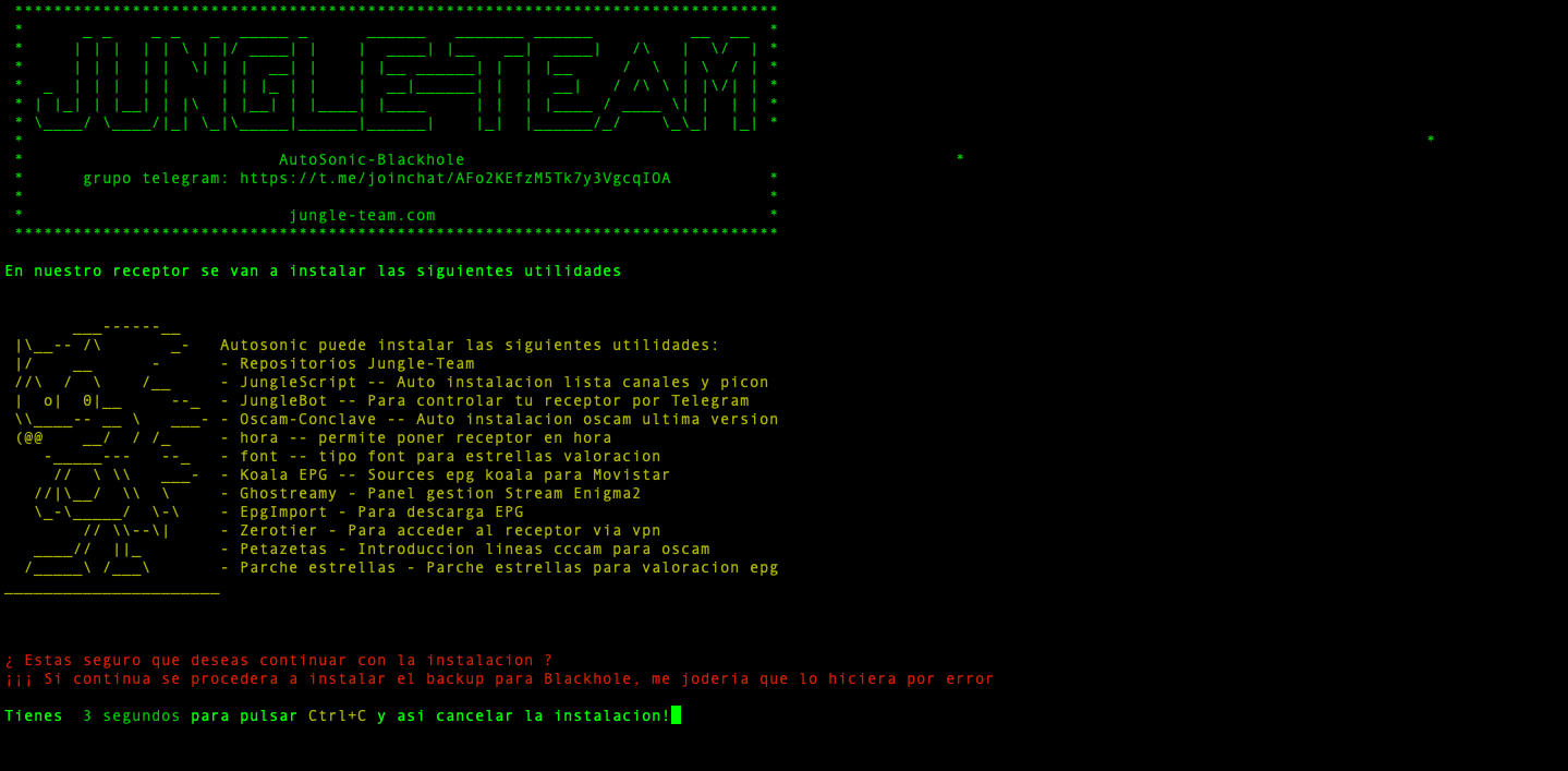 AutoSonic 3.0 es un script Shell para imagen enigma2 Blackhole para receptores Vuplus, que facilita lo tedioso o en algunas veces la dificultad que se tiene para configurar Blackhole en una primera instalación, sobre todo cuando no estamos muy habituados a este tipo de sistemas. Puede instalar todas las aplicaciones basicas para un funcionamiento de Blackhole o elegir las que quieres instalar.