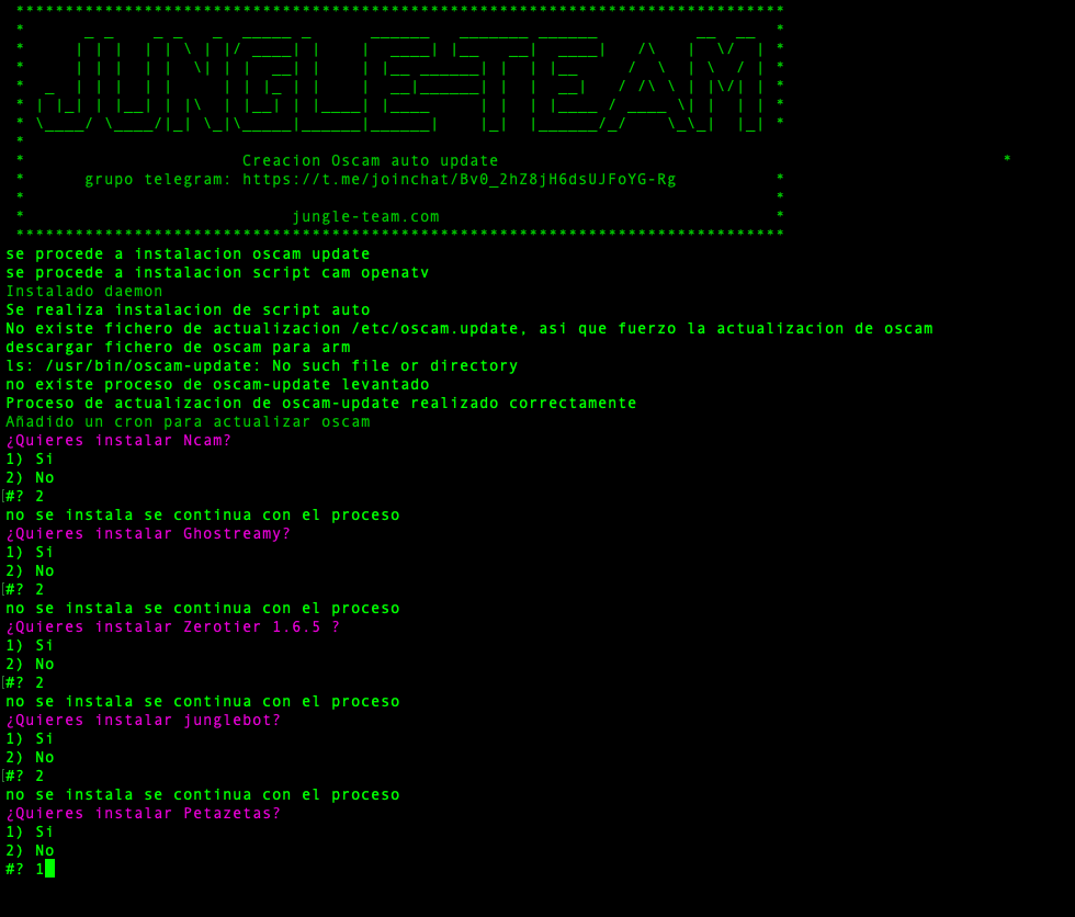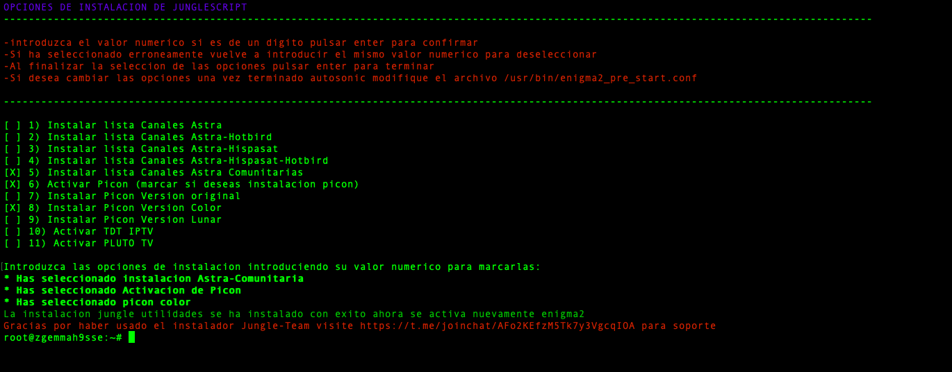 - JungleScript: Auto instalador de listas canales y picones, cuando hay actualizaciones y cambios de canales tu receptor de manera automatica se actualiza, nunca tener listas actualizadas fue tan simple.