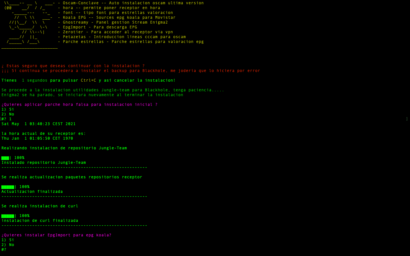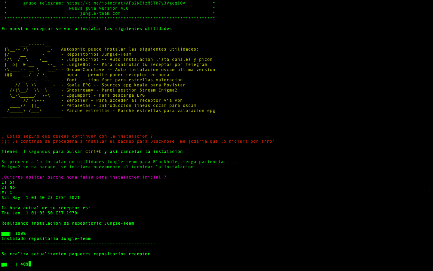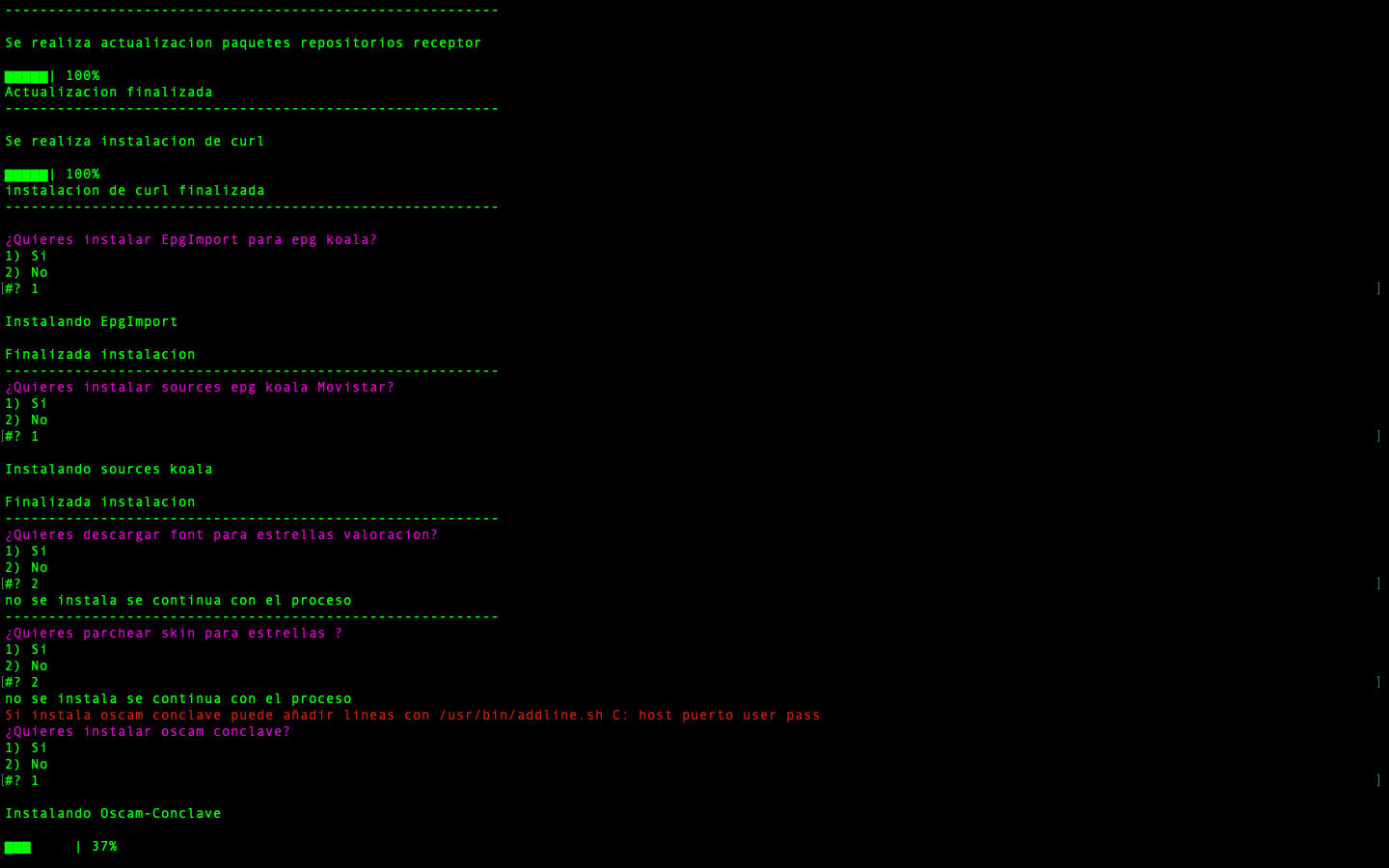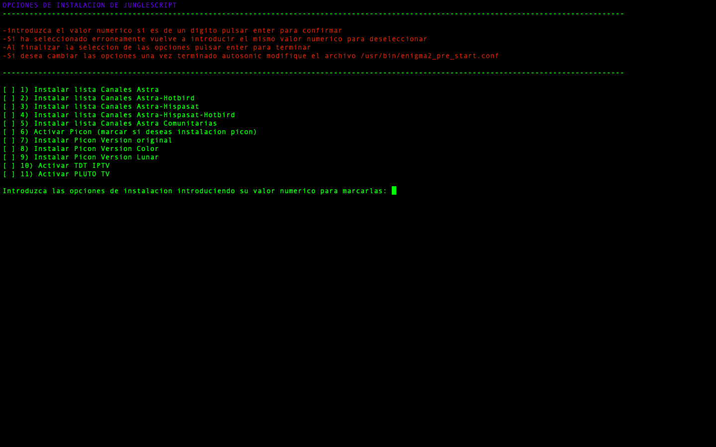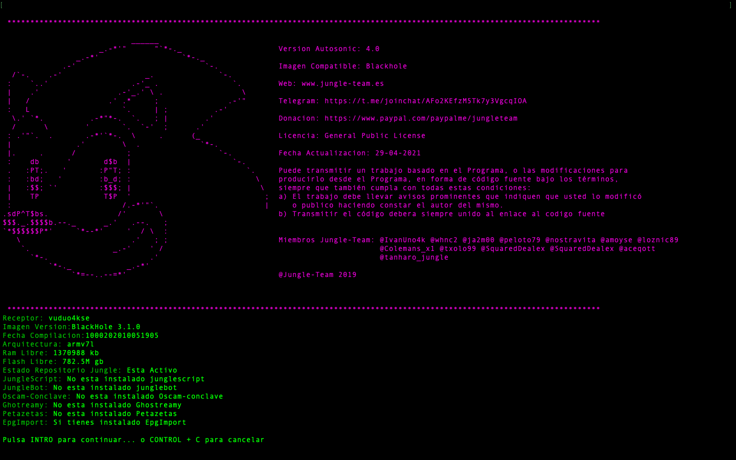 - JungleScript: Auto instalador de listas canales y picones, cuando hay actualizaciones y cambios de canales tu receptor de manera automatica se actualiza, nunca tener listas actualizadas fue tan simple.