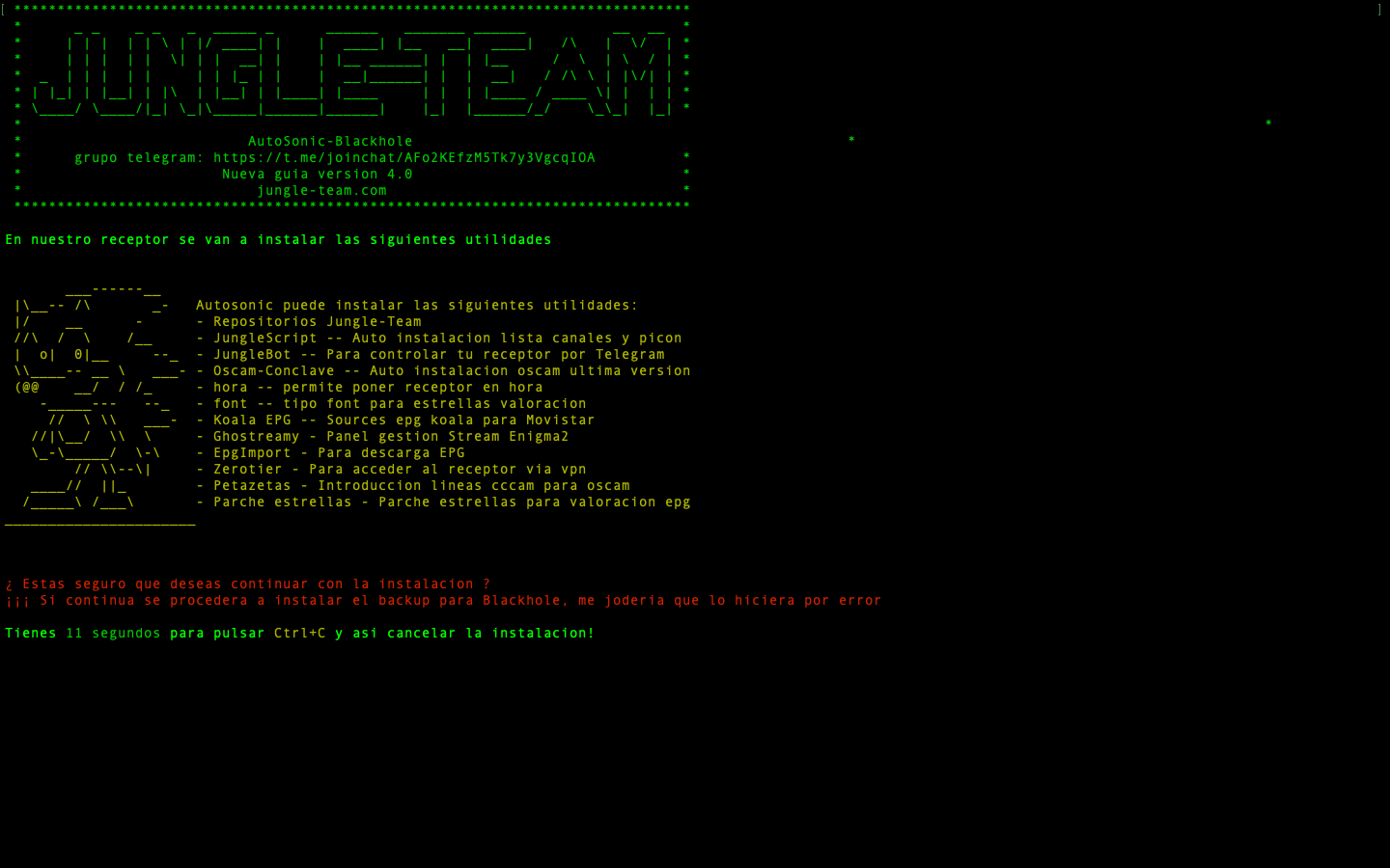 AutoSonic 4.0 es un script Shell para imagen enigma2 Blackhole para receptores Vuplus, que facilita lo tedioso o en algunas veces la dificultad que se tiene para configurar Blackhole en una primera instalación, sobre todo cuando no estamos muy habituados a este tipo de sistemas. Puede instalar todas las aplicaciones basicas para un funcionamiento de Blackhole o elegir las que quieres instalar.