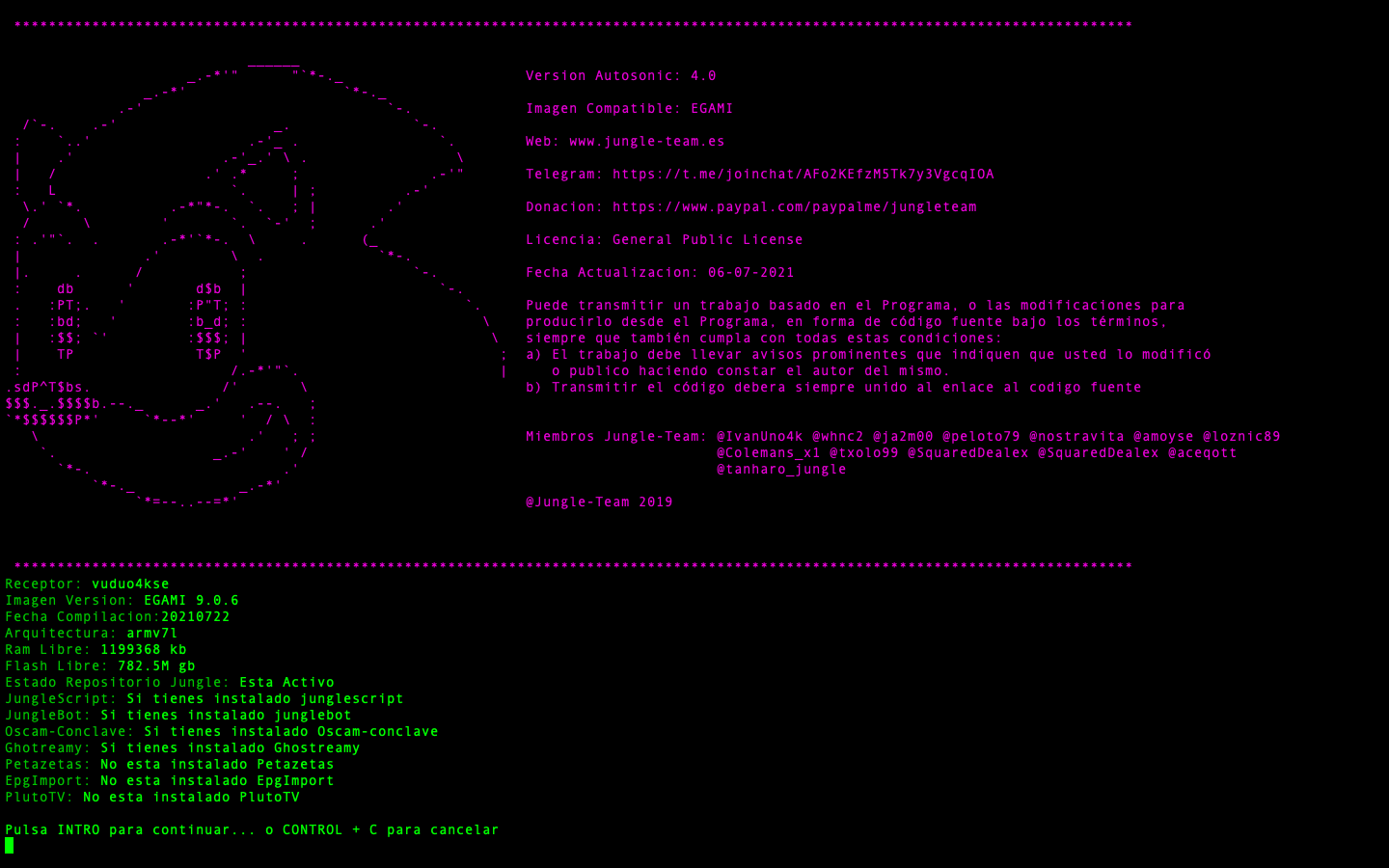 - JungleScript: Auto instalador de listas canales y picones, cuando hay actualizaciones y cambios de canales tu receptor de manera automatica se actualiza, nunca tener listas actualizadas fue tan simple.