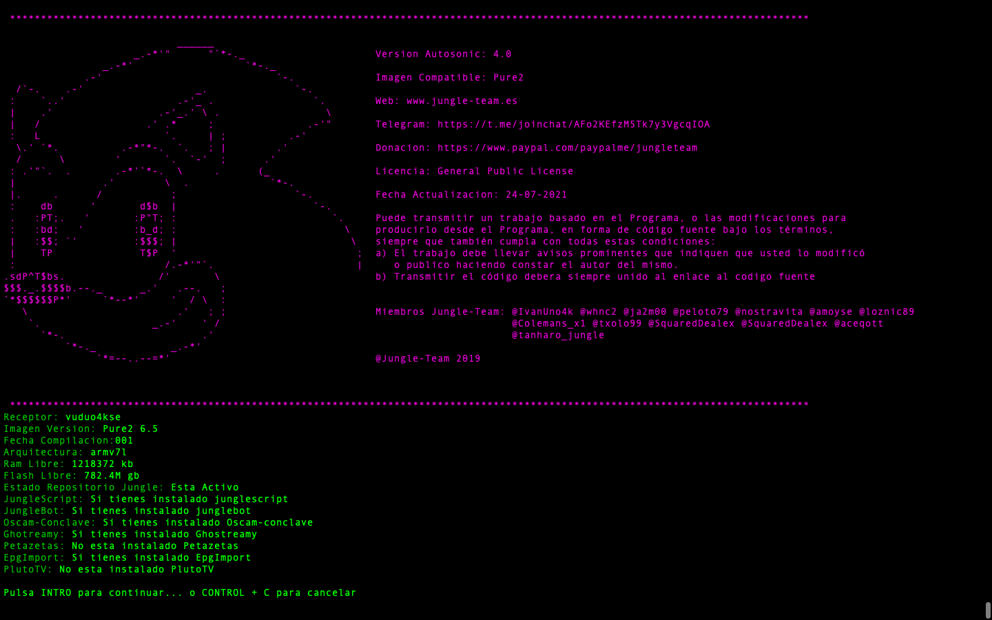 - JungleScript: Auto instalador de listas canales y picones, cuando hay actualizaciones y cambios de canales tu receptor de manera automatica se actualiza, nunca tener listas actualizadas fue tan simple.