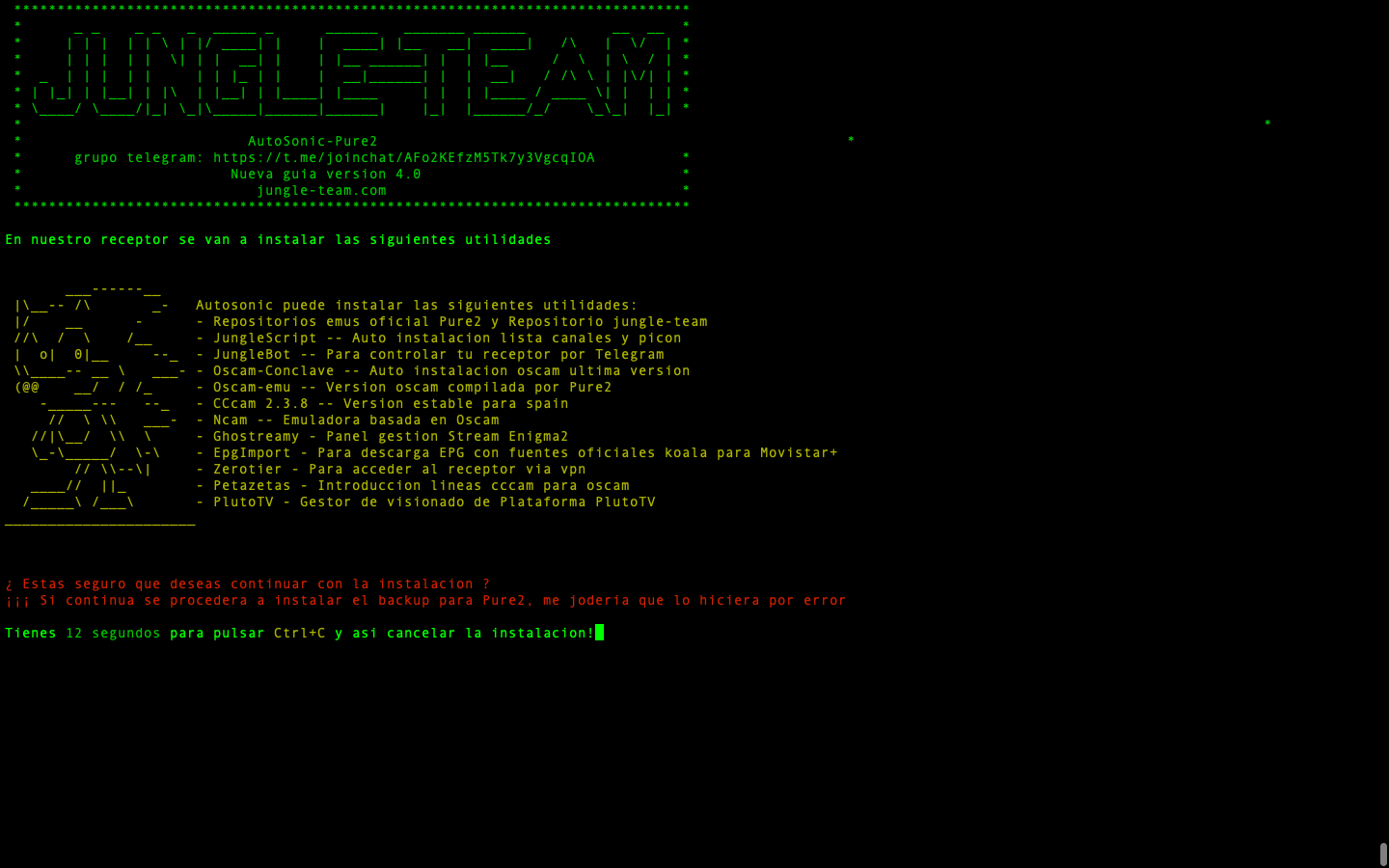 AutoSonic 4.0 es un script Shell para imagen enigma2 Pure2, que facilita lo tedioso o en algunas veces la dificultad que se tiene para configurar Pure2 en una primera instalación, sobre todo cuando no estamos muy habituados a este tipo de sistemas. Puede instalar todas las aplicaciones basicas para un funcionamiento de Pure2 o elegir las que quieres instalar.