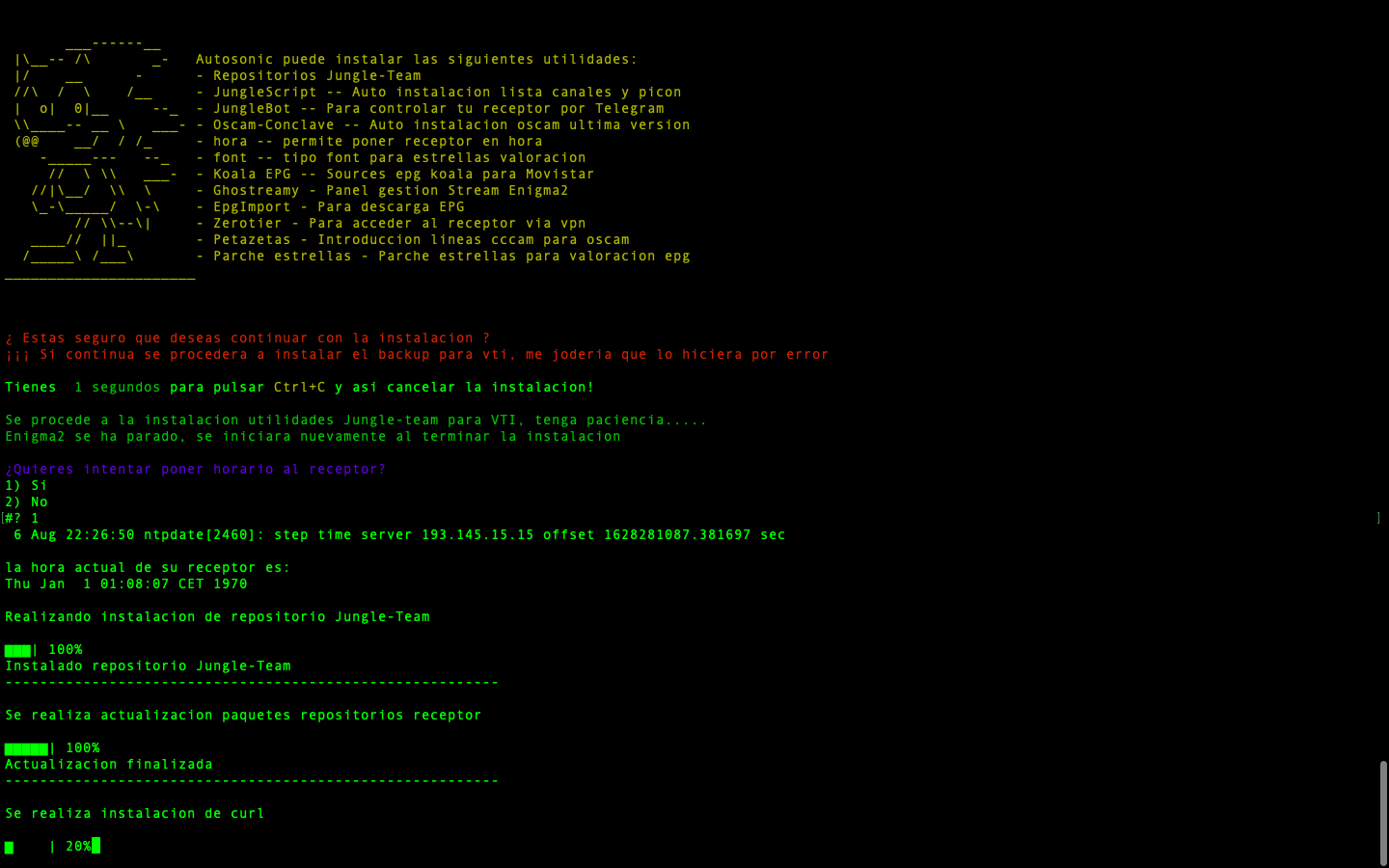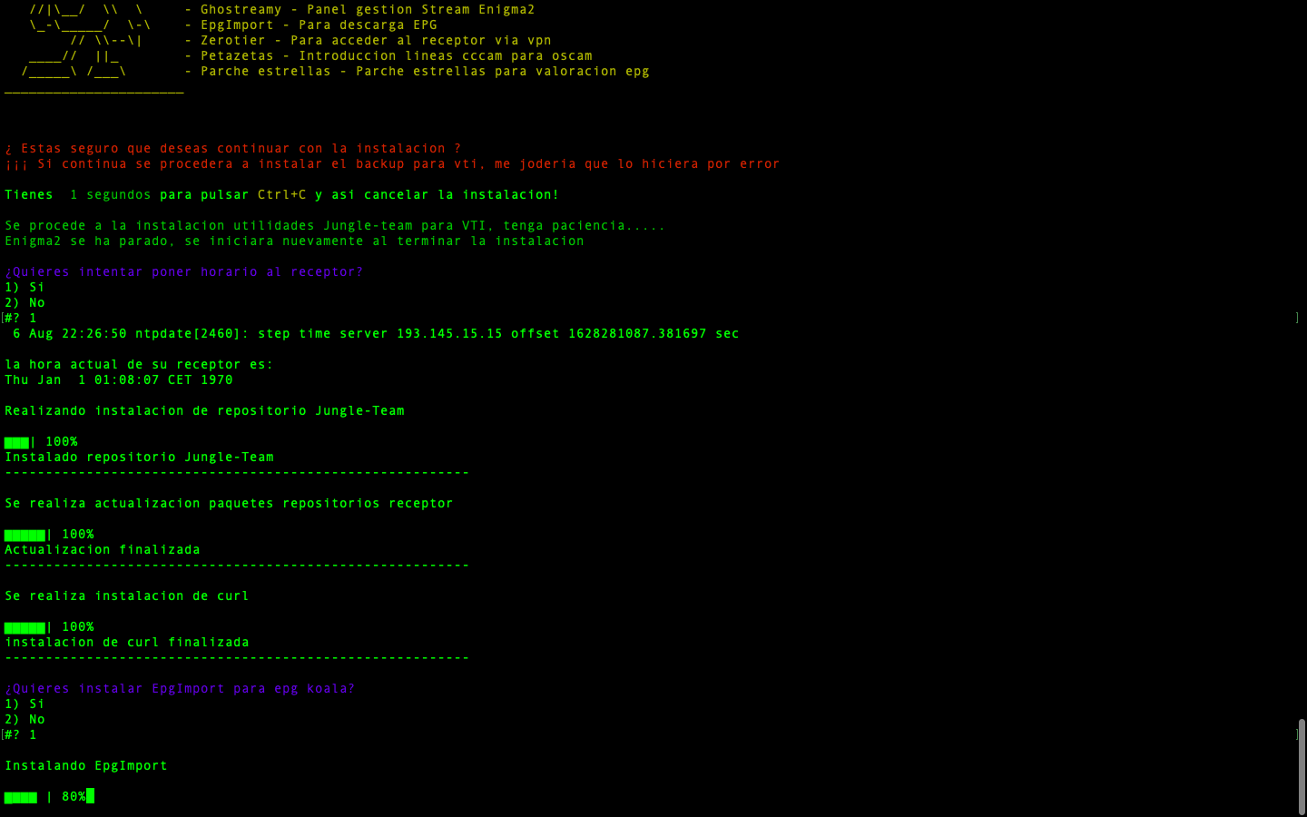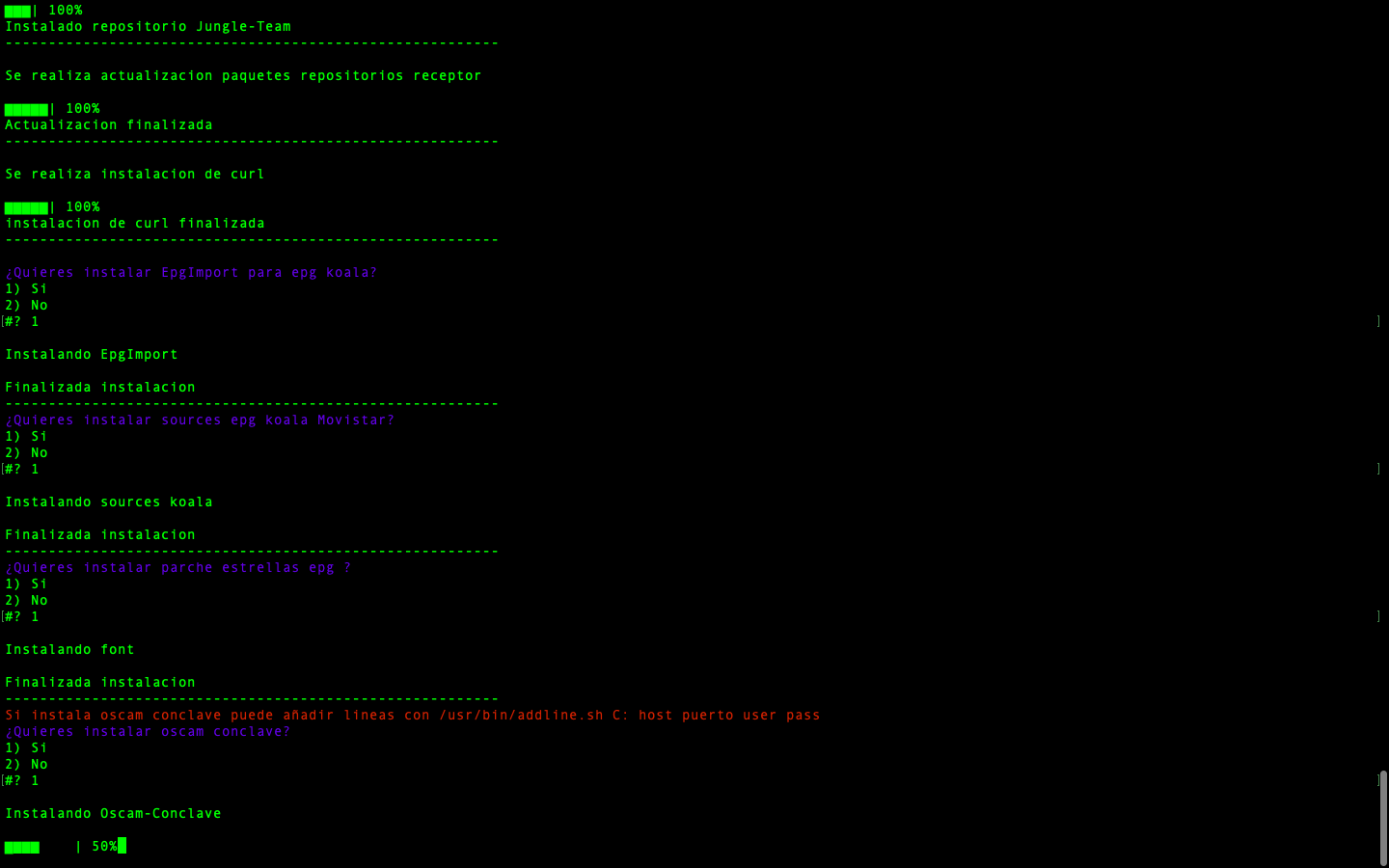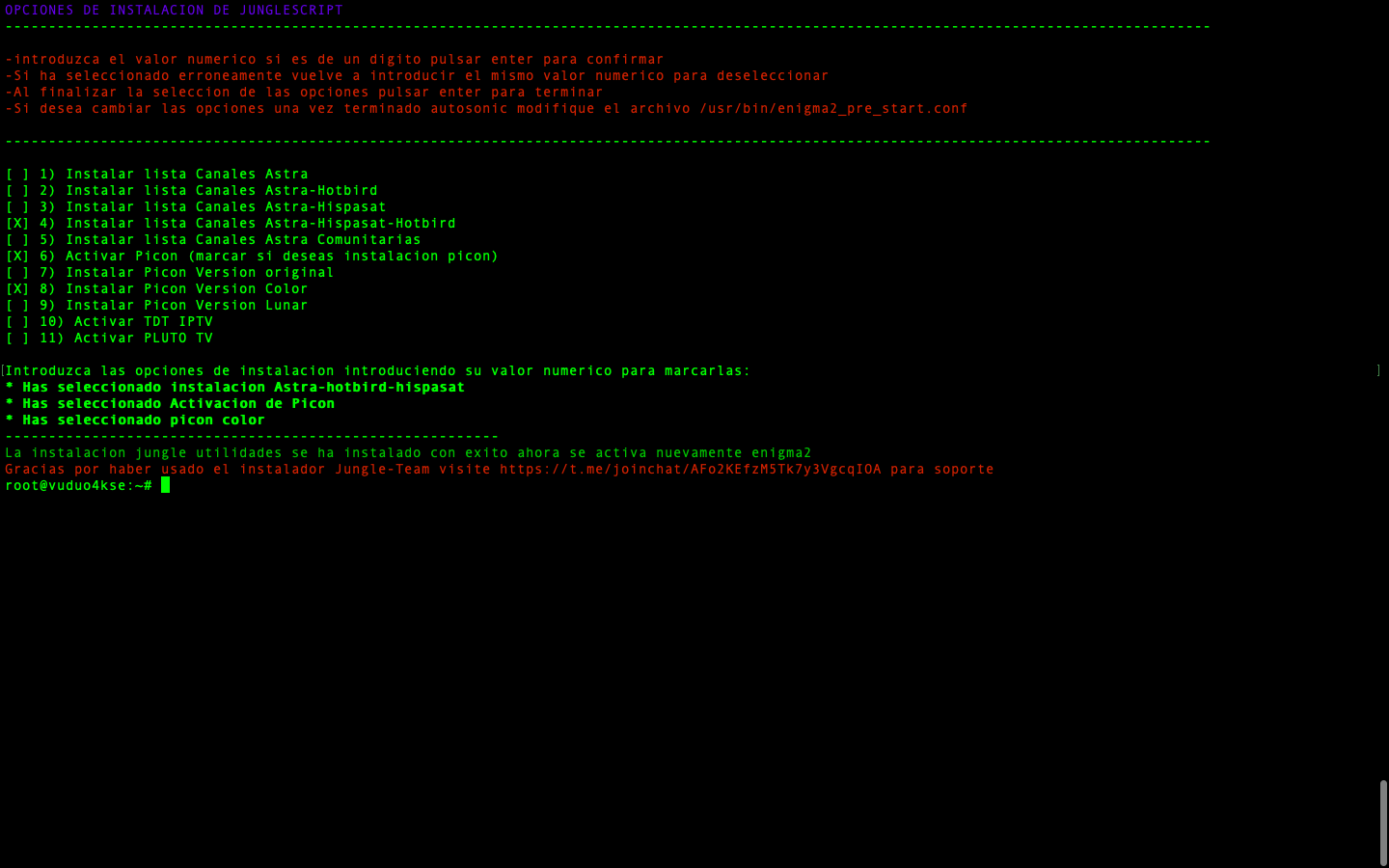 - JungleScript: Auto instalador de listas canales y picones, cuando hay actualizaciones y cambios de canales tu receptor de manera automatica se actualiza, nunca tener listas actualizadas fue tan simple.