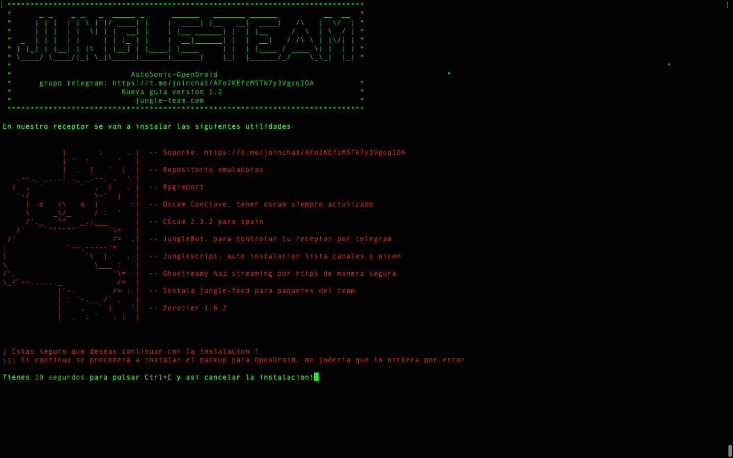 Los desarrolladores de jungle-Team han creado AutoSonic, pensado sobre todo, para aquellos usuarios, que tras instalar OpenDroid, no quieren perder mucho tiempo, y tener todo lo necesario para funcionar en cuestión de minutos. Simplemente introducir un comando y pulsar intro y tenemos nuestro receptor con las principales utilidades instaladas.
