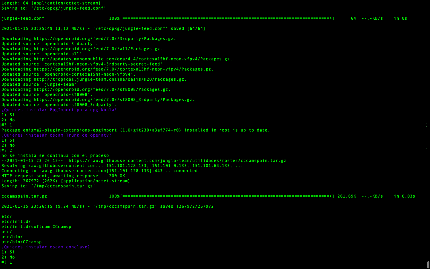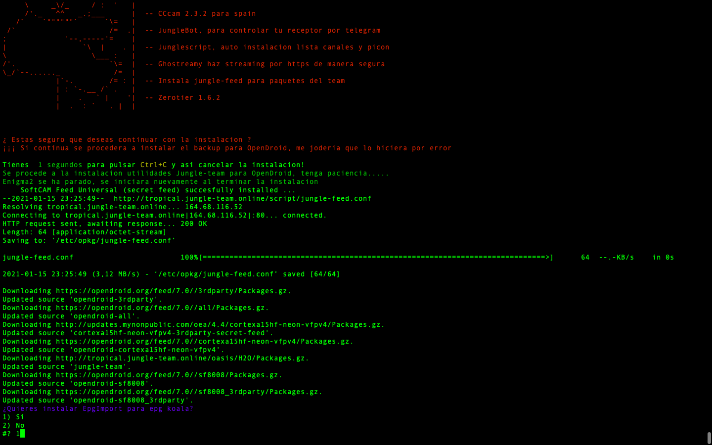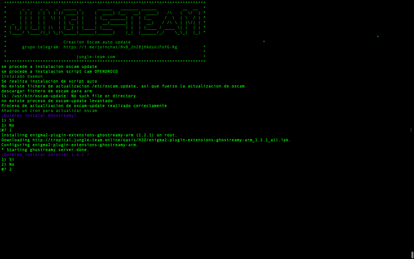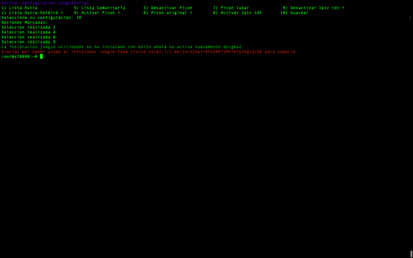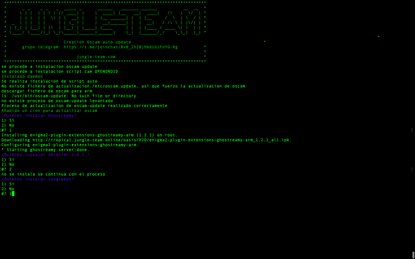 - JungleScript: Auto instalador de listas canales y picones, cuando hay actualizaciones y cambios de canales tu receptor de manera automatica se actualiza, nunca tener listas actualizadas fue tan simple.