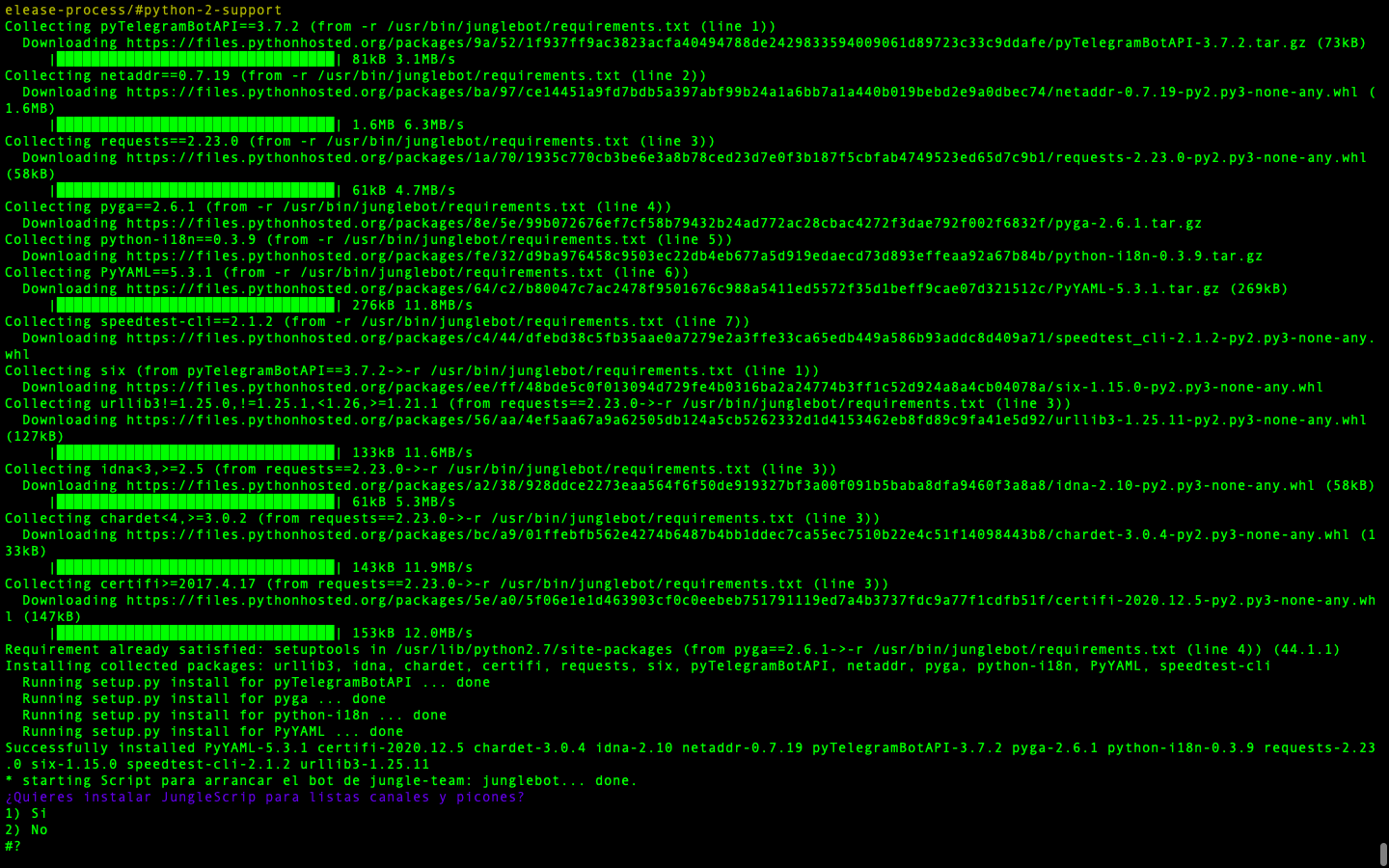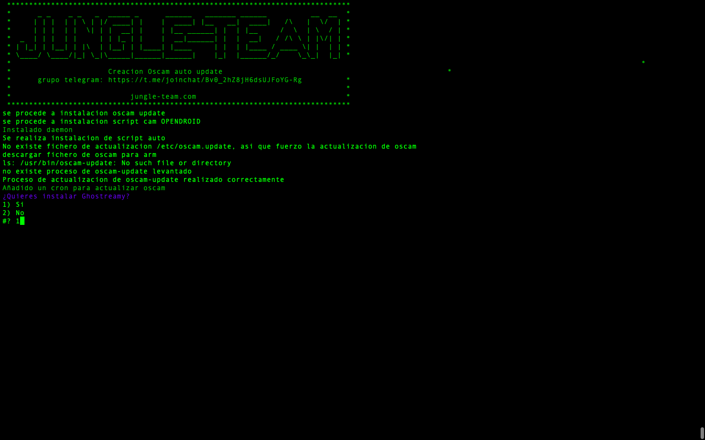 - Importante nueva version, en la que se permite tras instalar jungleScript el poder Seleccionar que deseamos que nos instale, deberemos marcar introduciendo el numero correspondiente las selecciones: