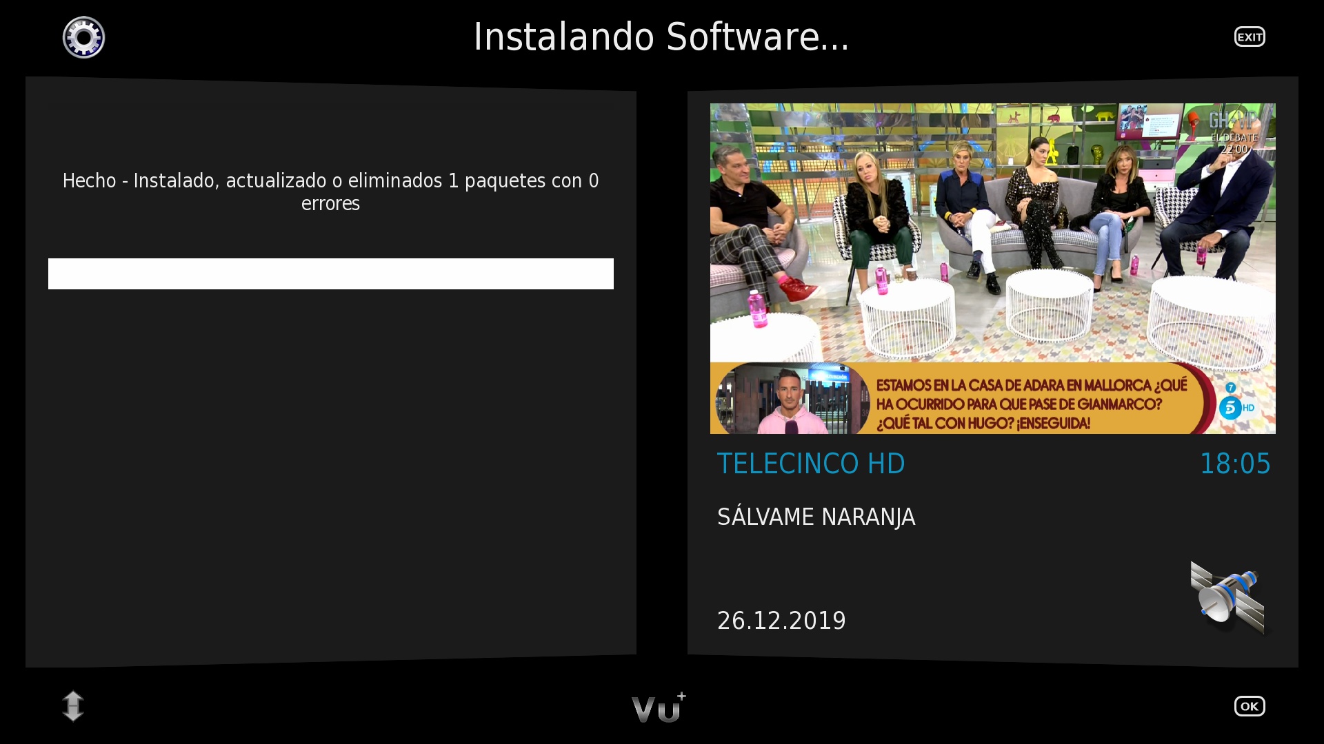 Ahora debemos esperar a que termine la instalación, tras ello el receptor se reiniciara automaticamente y tendremos instalado lo mas funcional y basico: