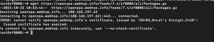 Como hemos comentado para acceder al archivo .packages.gz que lista los paquetes disponibles en el servidor de openspa, openspa usa una url en su servidor https que necesita que el certificado mencionado no este caducado.