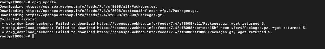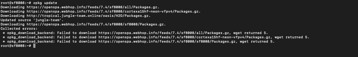 Esto provoca que cuando el receptor quiere acceder a la lista de plugins no pueda, por ejemplo usando el comando opkg update