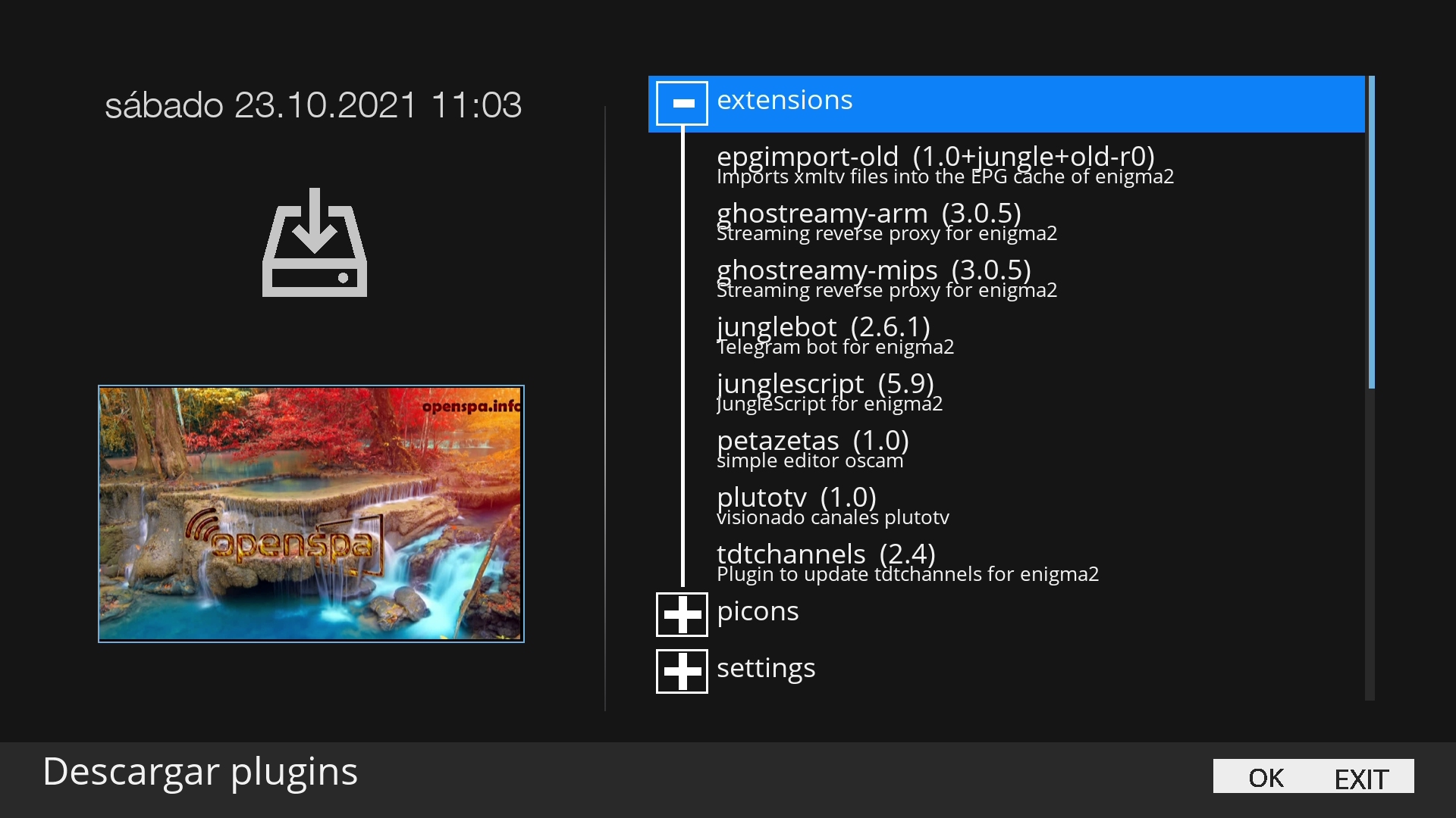 como vemos falla el acceso al repositorio openspa que la url es https (necesita el certificado), pero no falla en la url jungle por que es http (no necesita certifcados)., esto implica que si ahora entraremos de nuevo al menu plugin openspa pues evidentemente solo listara los plugins alojados en jungle team (http) pero no los de openspa (https)