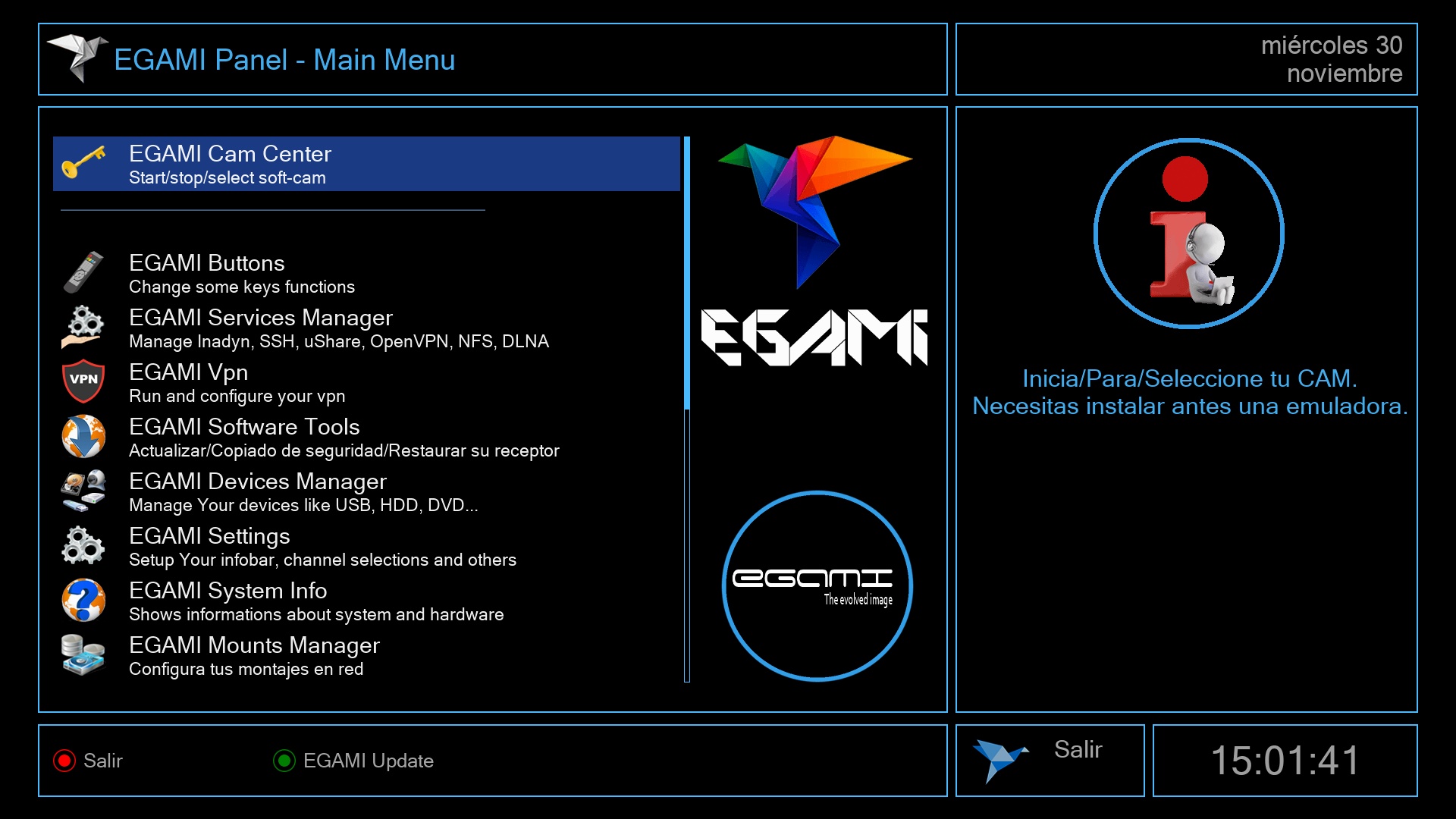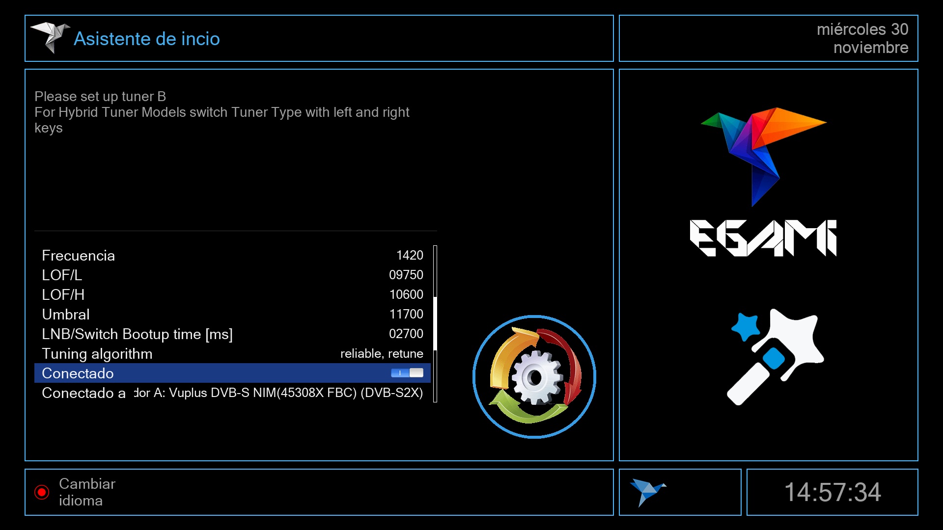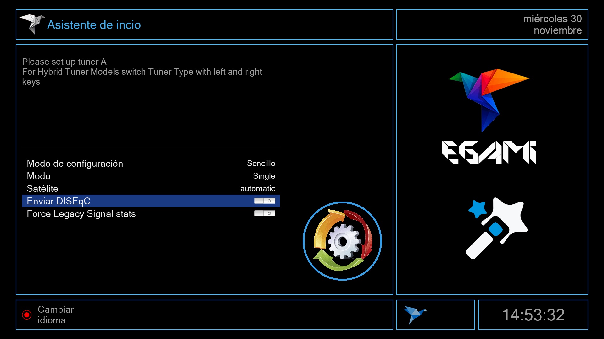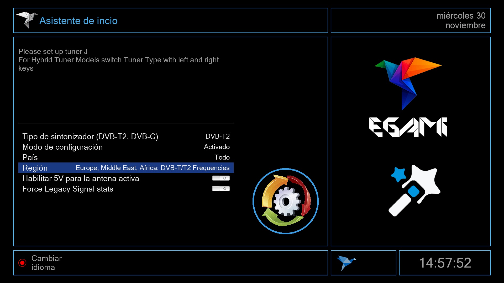 Tras ese ultimo paso se iniciara el menu de Egami y el receptor estara listo para su uso.
