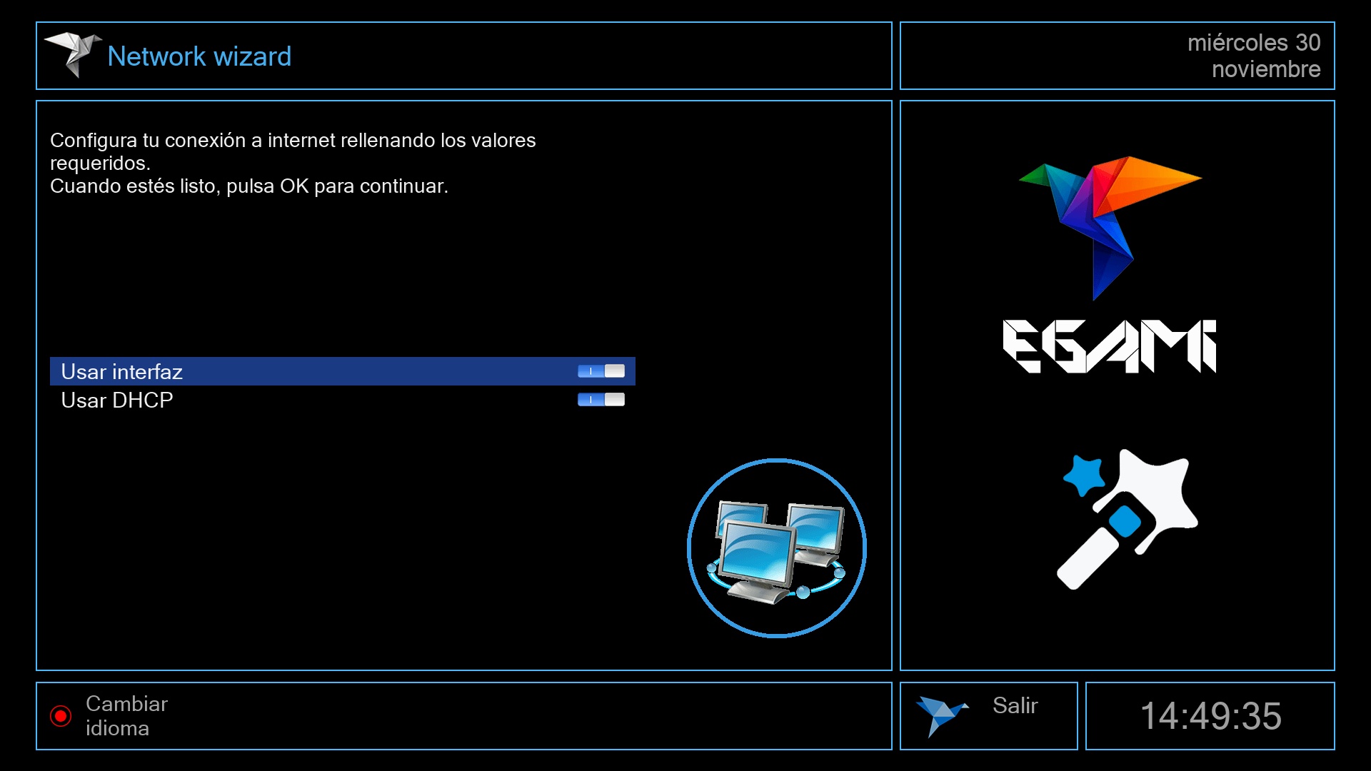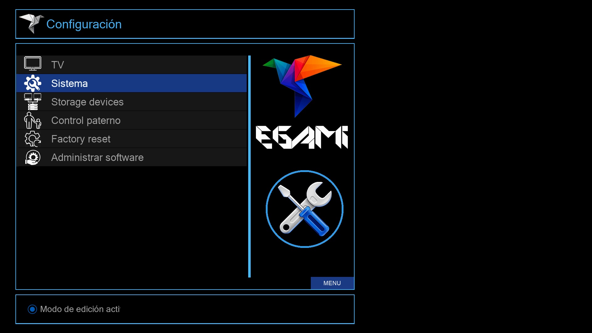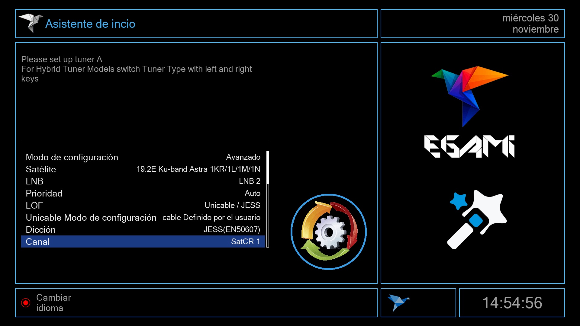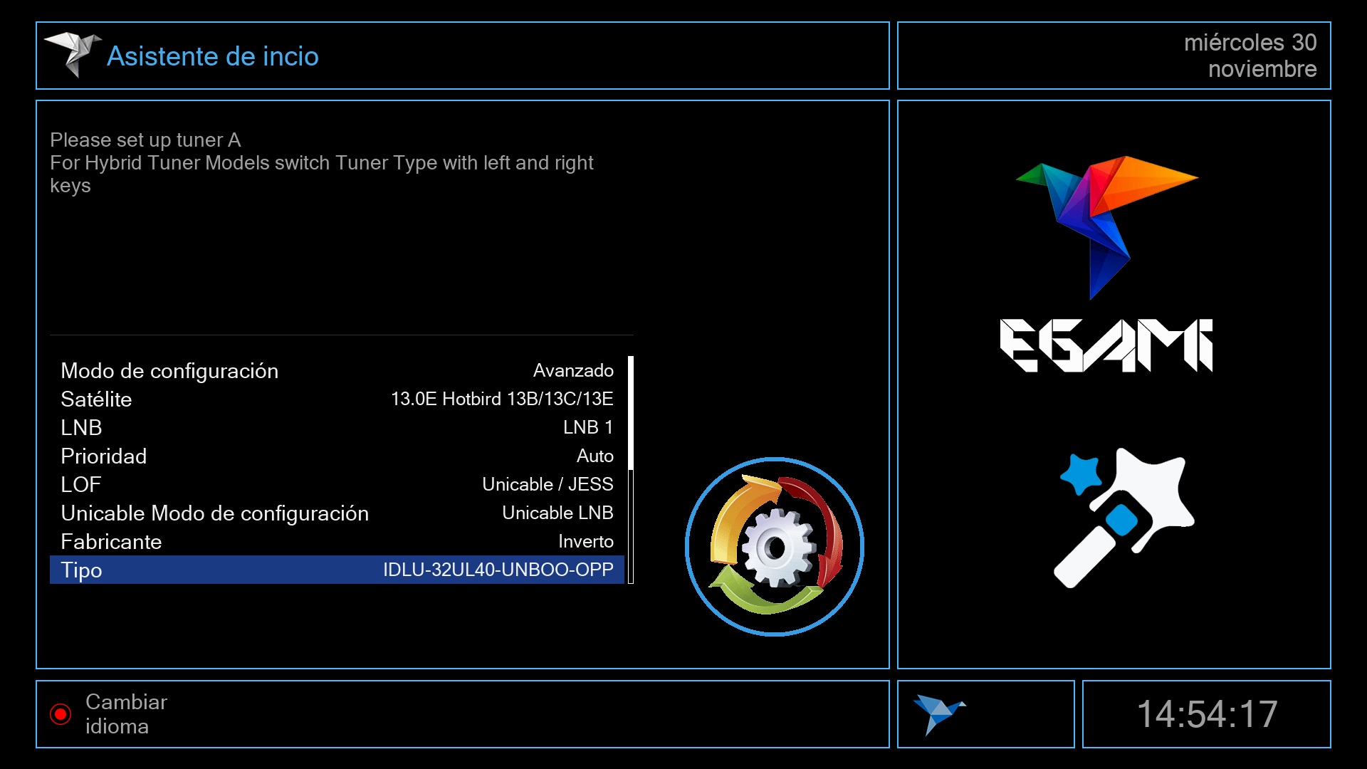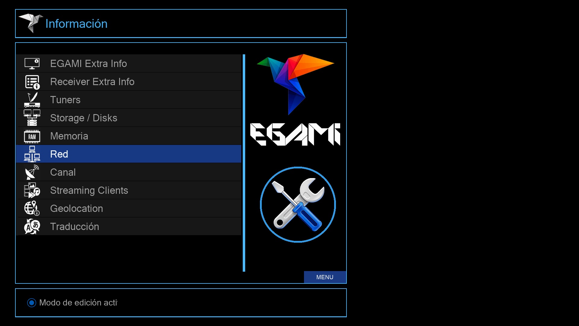 Tras ese ultimo paso se iniciara el menu de Egami y el receptor estara listo para su uso.
