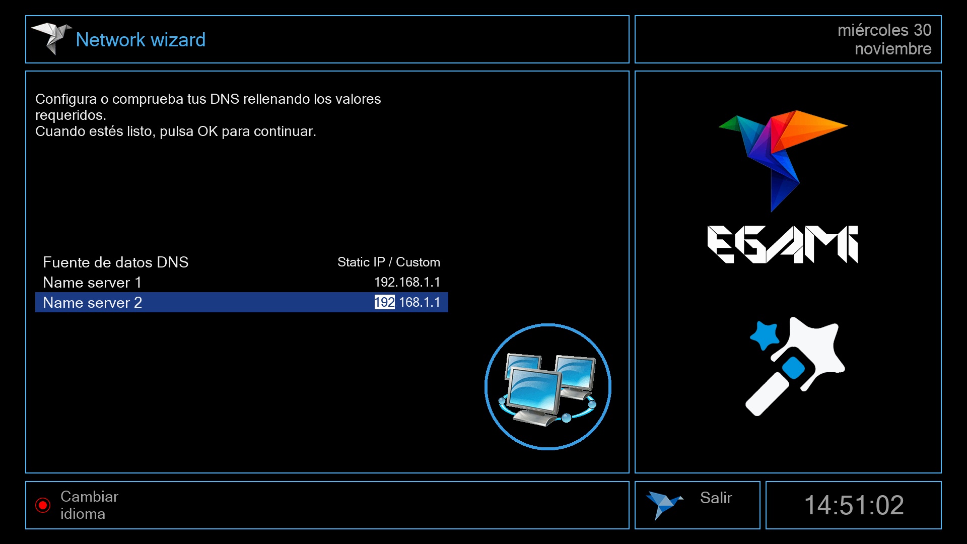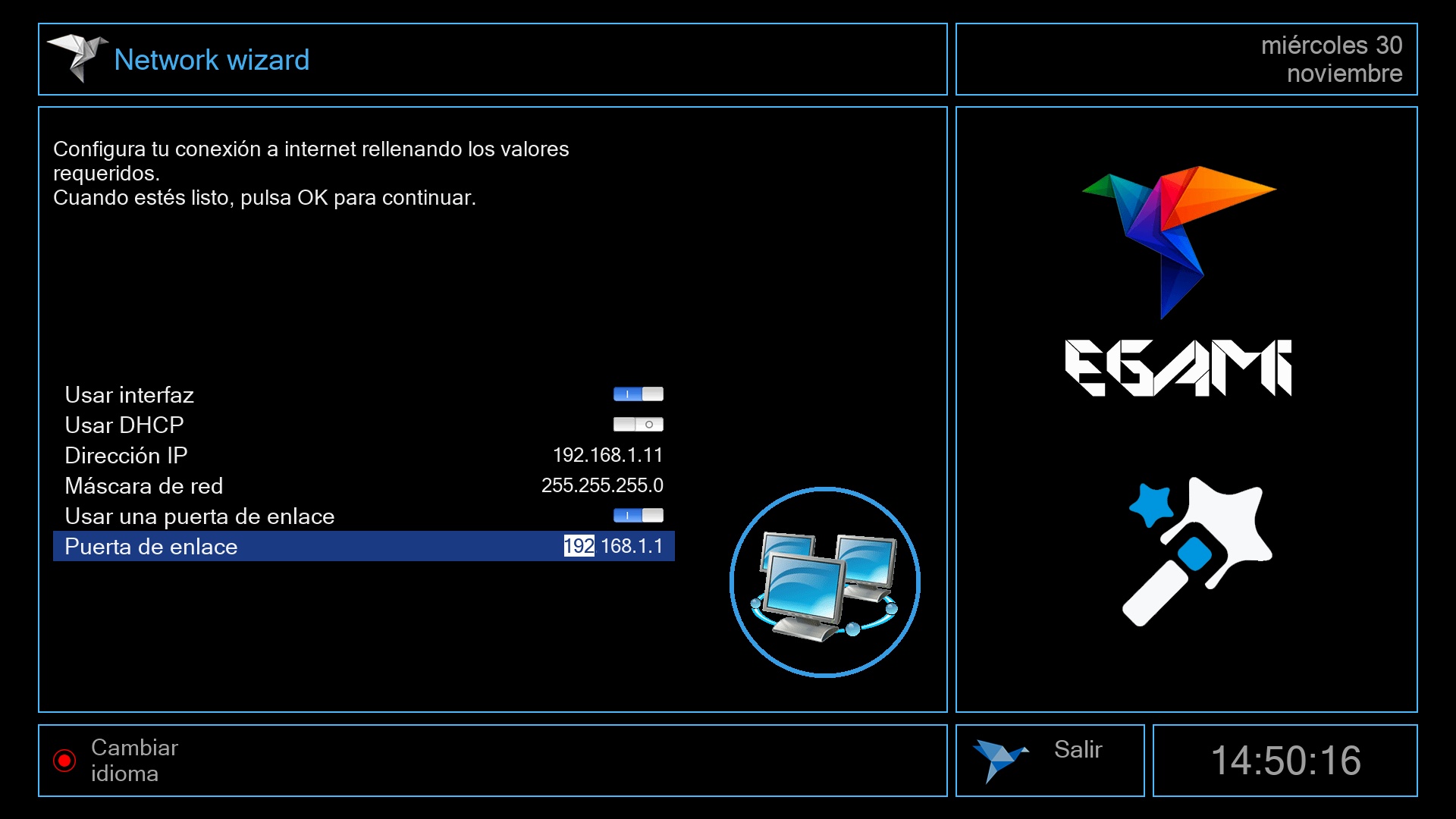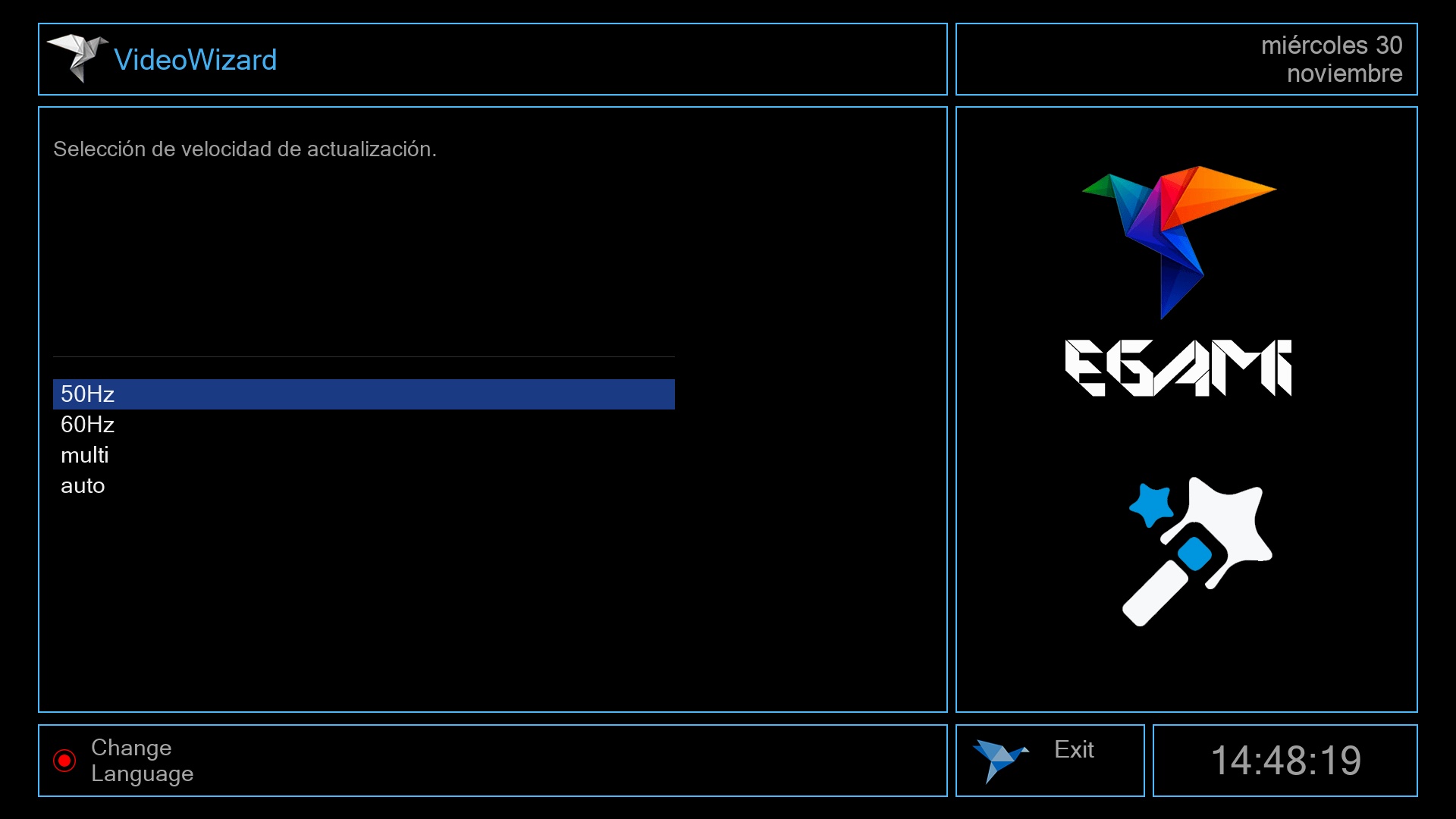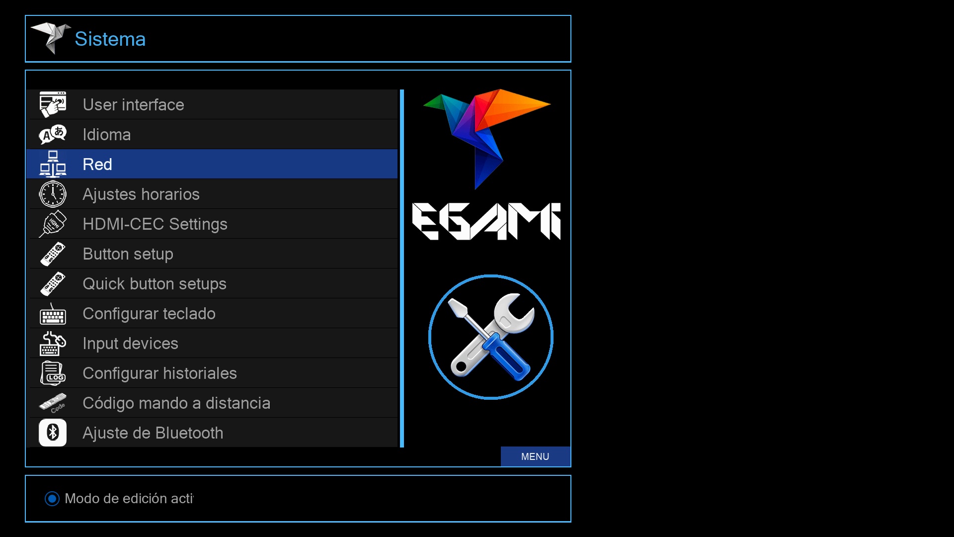 Tras ese ultimo paso se iniciara el menu de Egami y el receptor estara listo para su uso.