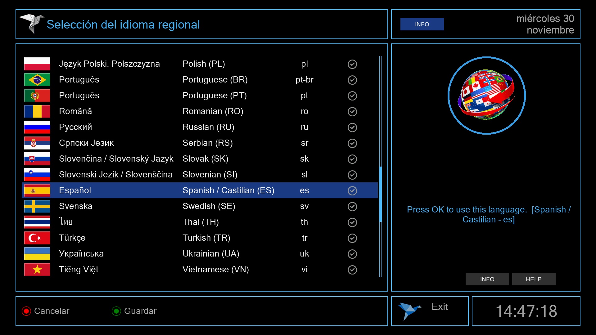 Seleccionamos la lista canales que deseamos instalar