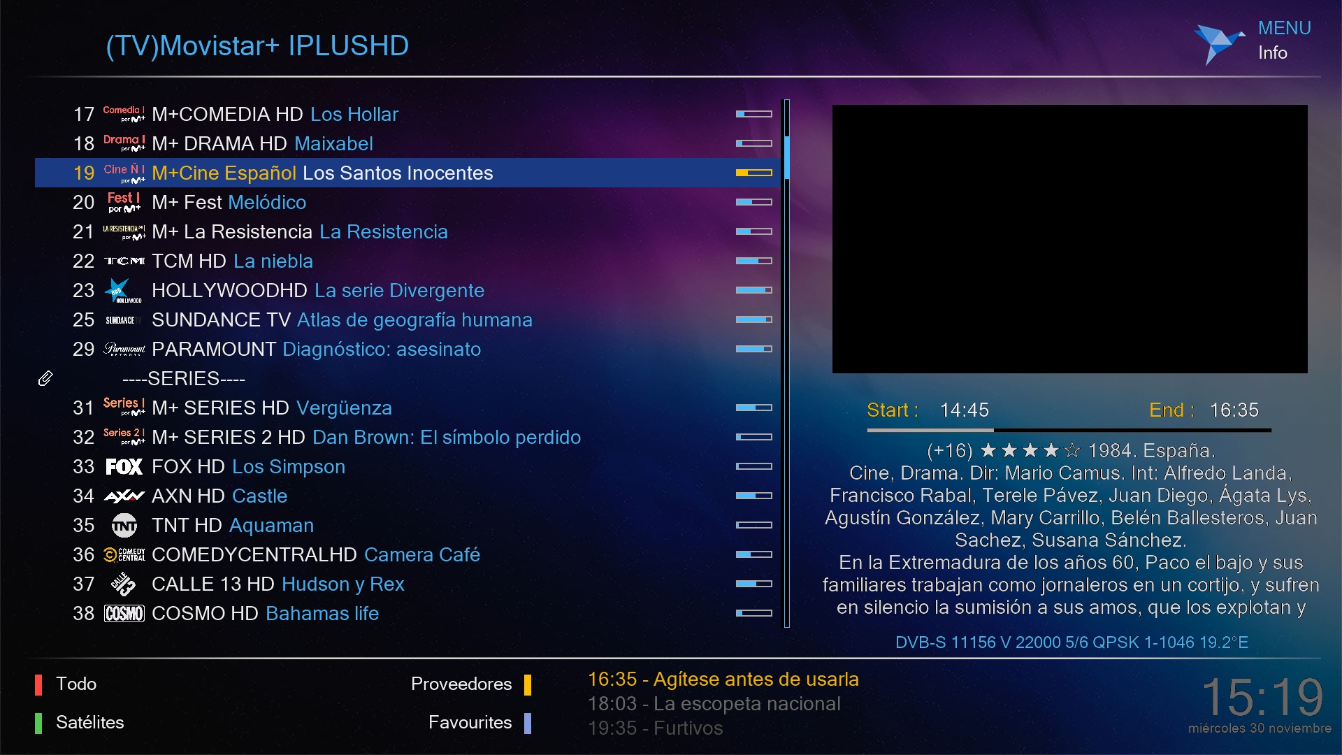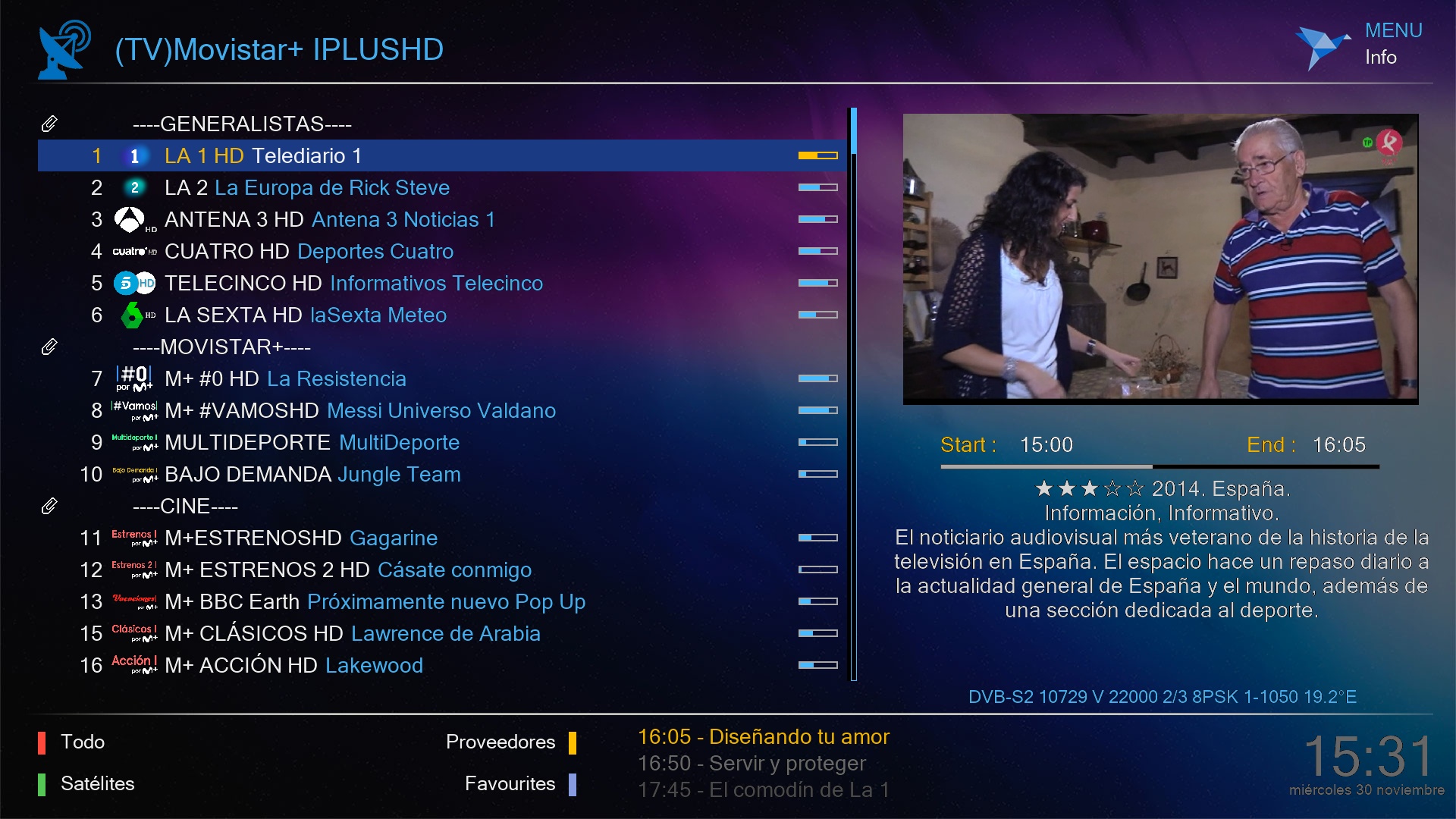Al finalizar tendremos el epg en nuestros canales