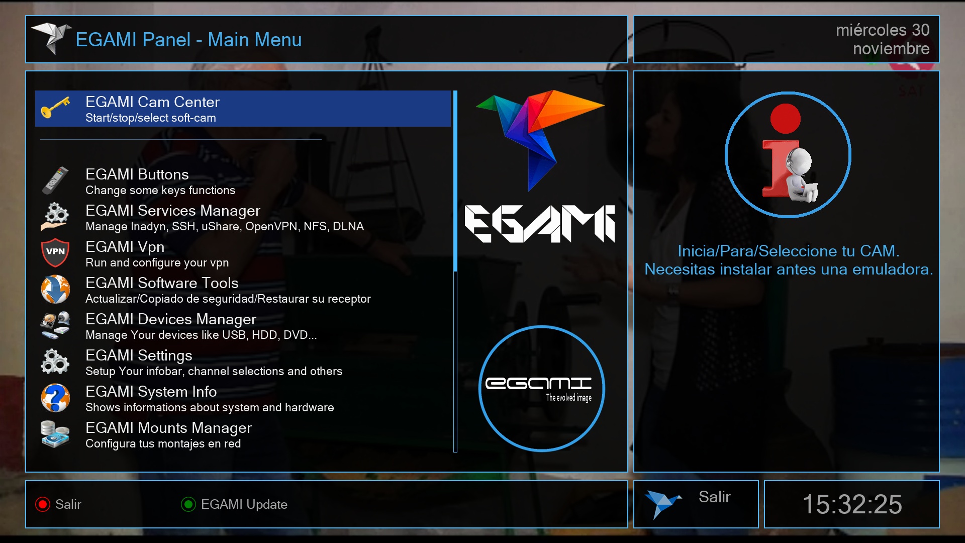 Por defecto egami tiene en sus repositorios la posibilidad de instalar softcam, para realizar su instalacion es muy facil, realizamos los siguientes pasos.