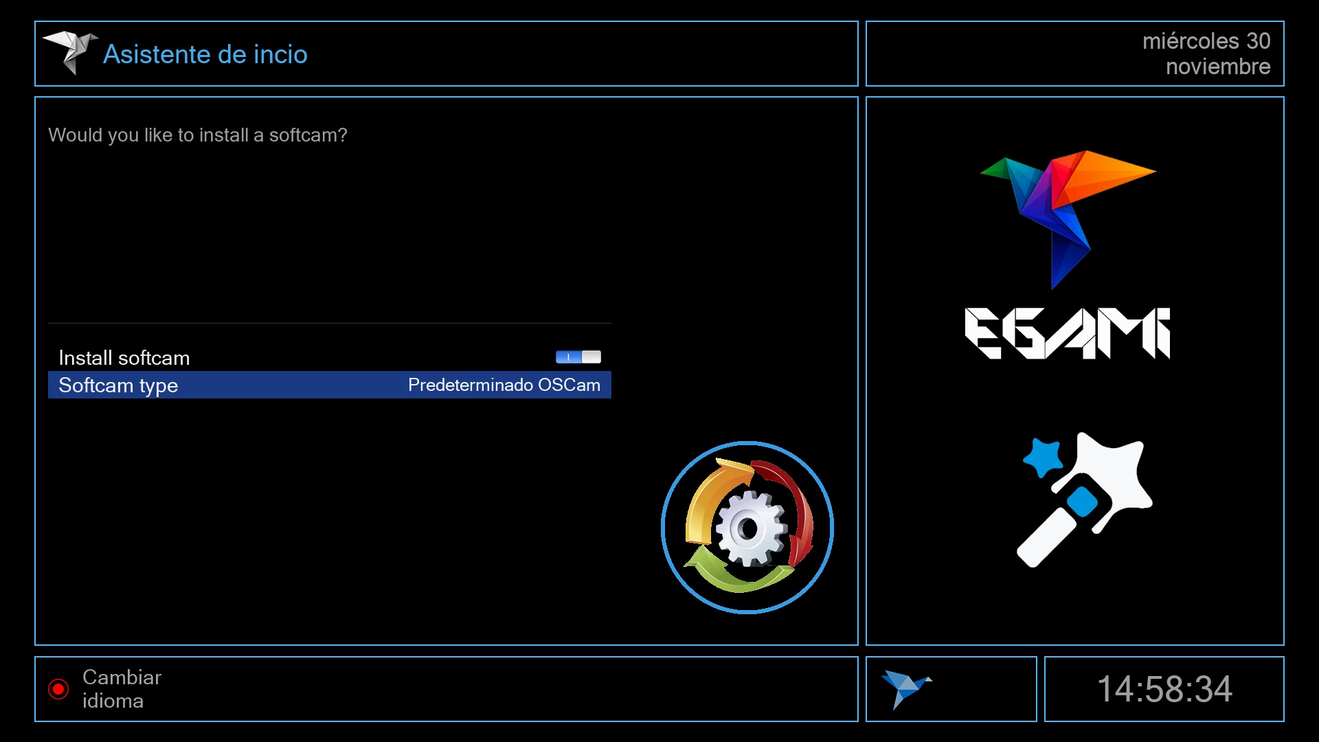 Durante el wizard de primera configuracion nos permite realizar la instalacion de softcam
