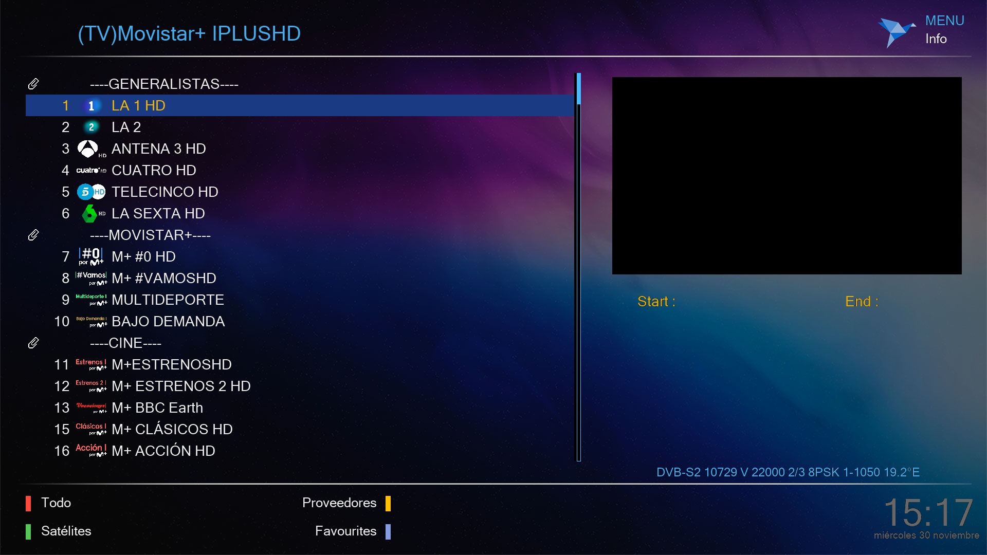 tras configurar el sistema de antena, podemos instalar lista canales predefinida
