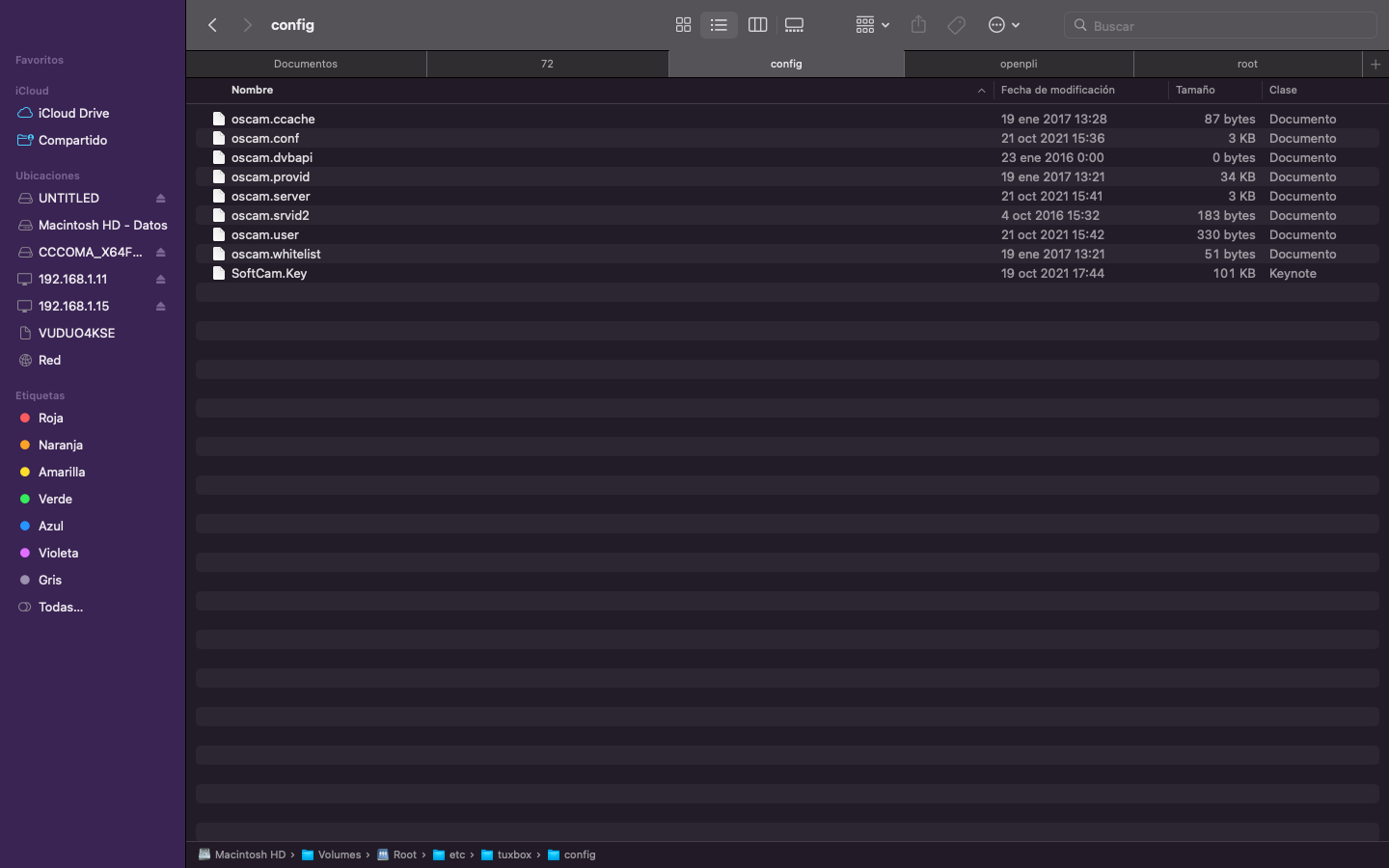 Por ultimo si se desea activar el softcam en este caso oscam que instalemos anteriormente para ello lo podemos hacer accediendo a la carpeta de configuracion de oscam situada en /etc/tuxbox/config