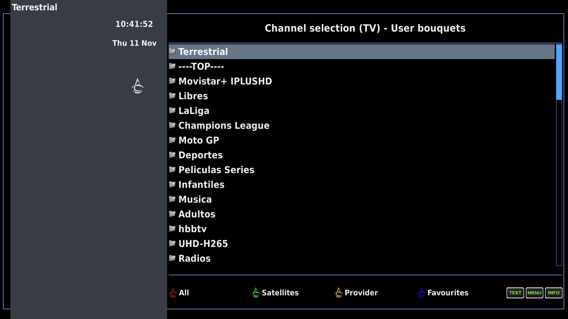 3. Al finalizar la busqueda de canales se nos habra creado automaticamente un favorito llamado terrestrial