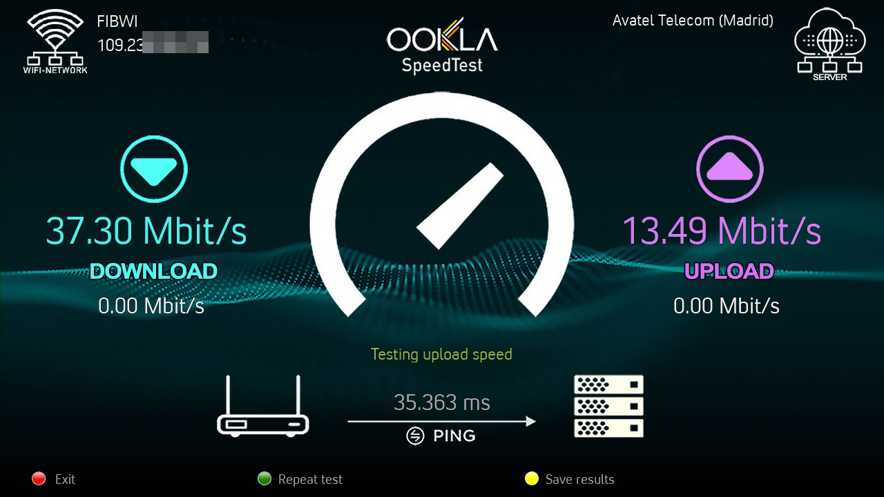 Ahora vamos a realizar un test de velocidad de red a traves de la conexion wifi que hemos establecido arrojando los siguientes resultados: