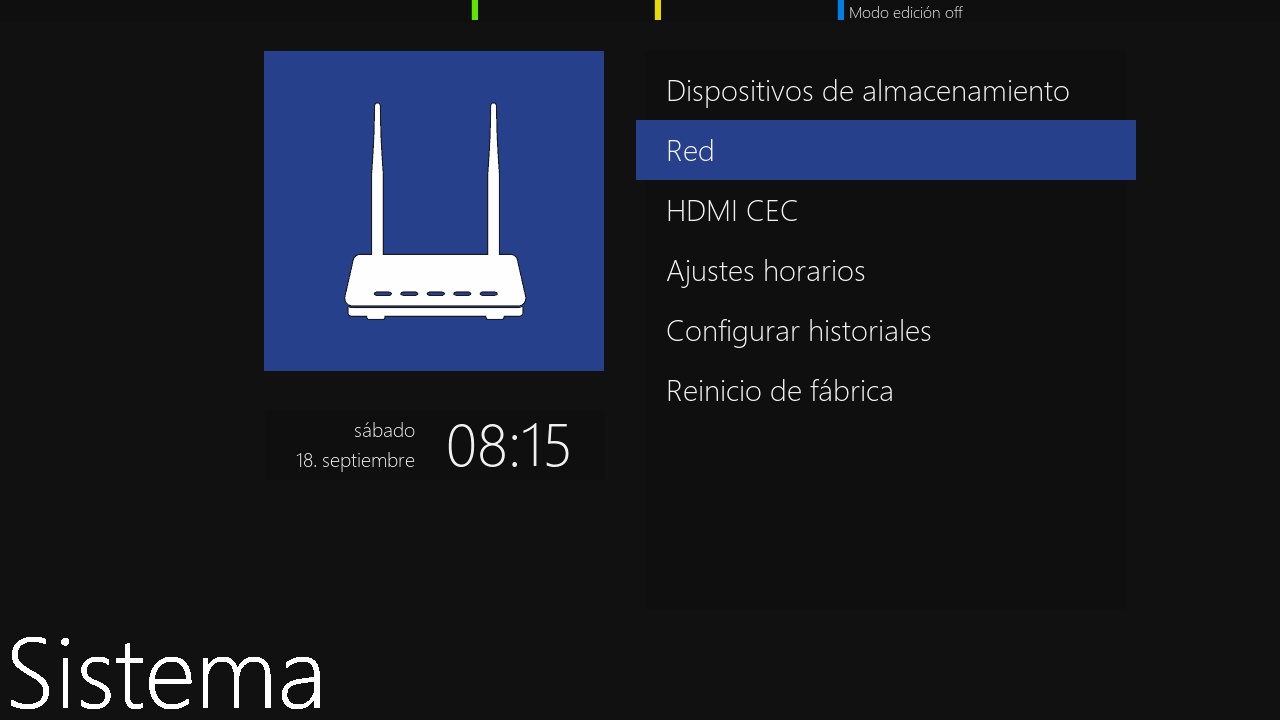 Para realizar la conexion a traves del menu pulsamos en menu + configuracion + sistema + Red