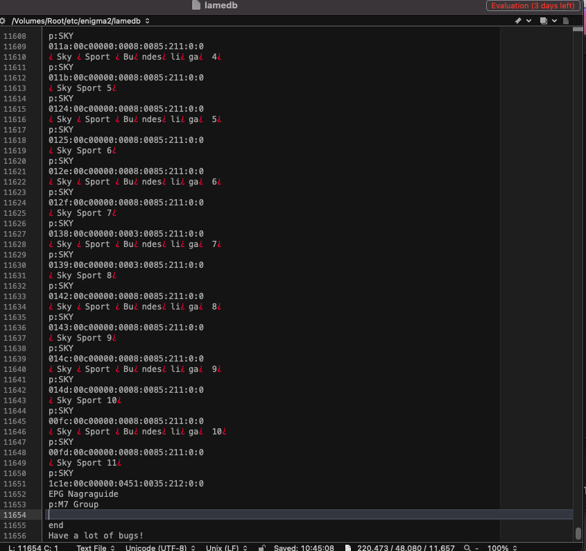 a) Accedemos al receptor enigma2 al archivo /etc/enigma2/lamedb y lo abrimos con un editor de textos, recomendable notepad++