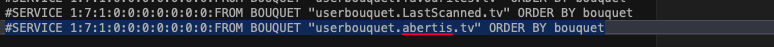 g) Ahora abrimos el archivo /etc/enigma2/bouquet.tv y añadimos al final la siguiente linea para añadir ese favorito que hemos puesto