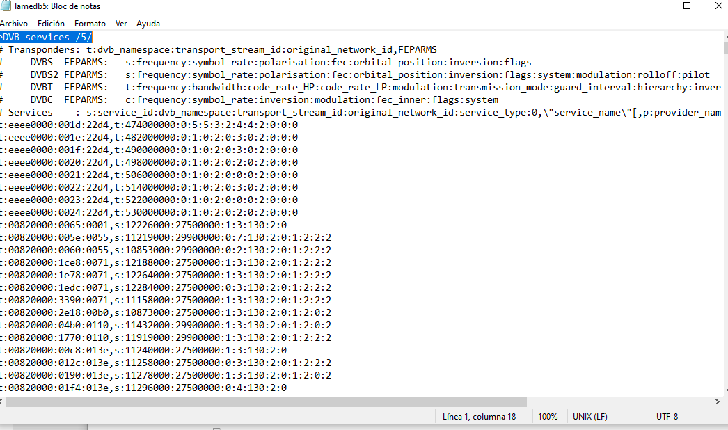 Antes de comenzar con el manual debemos tener en cuenta como nocion de funcionamiento de una lista canales, que cuando realizamos busqueda de canales en este caso de TDT las frecuencias y los canales en los que hemos realizado la busqueda se guardan en el archivo del receptor /etc/enigma2/lamedb