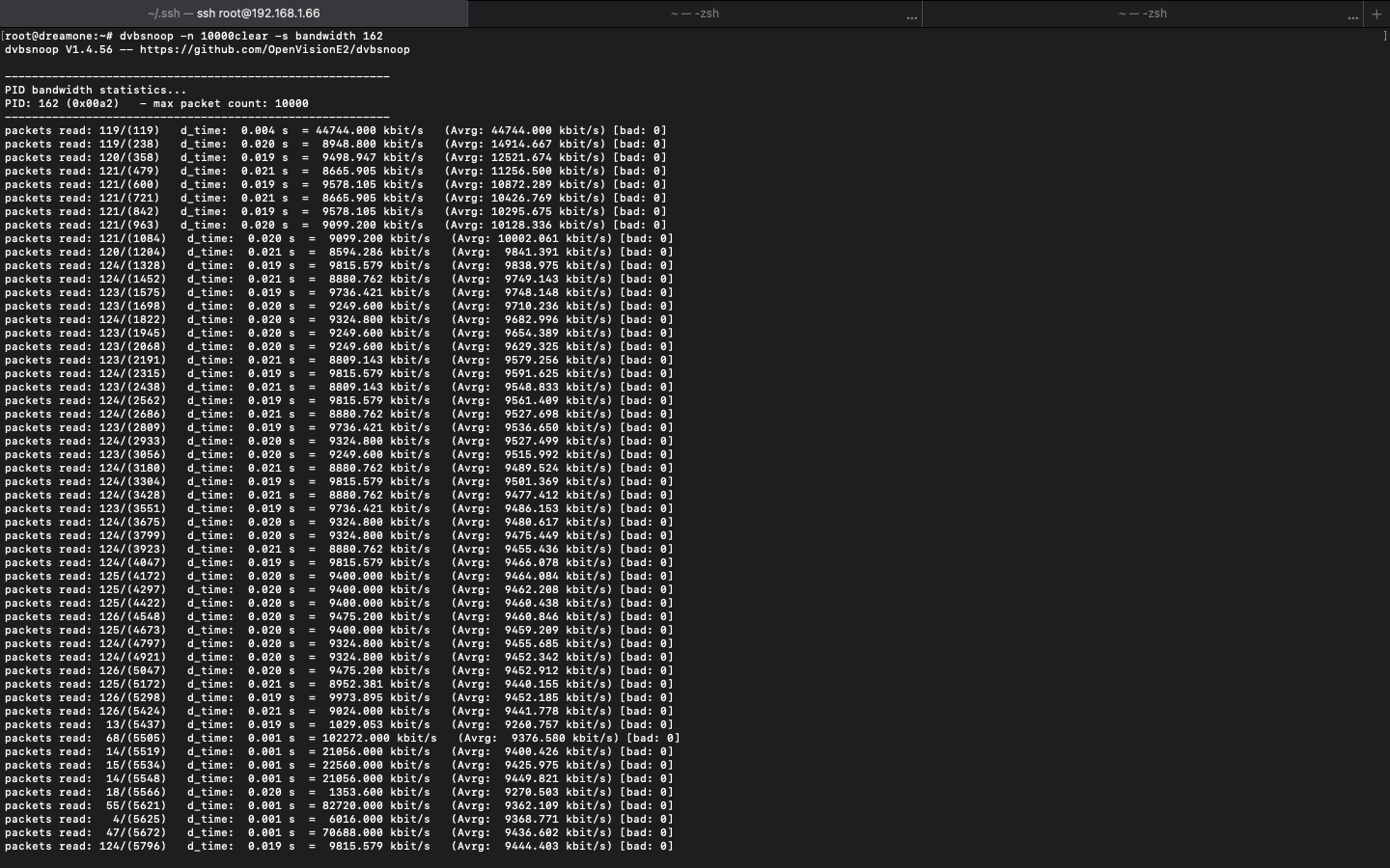 dvbsnoop -n 100000 -s ts -tsraw -s bandwidth