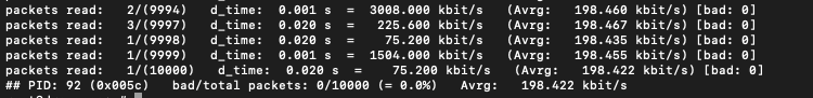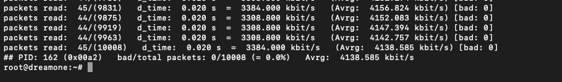 En este ejemplo para el canal AMC HD el pid de video es 162 y el pid de audio 92, para medir su bitrate de video ejecutariamos: