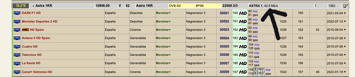 Este bitrate completo de un transport stream es el que se refleja en muchas paginas de informacion satelite: