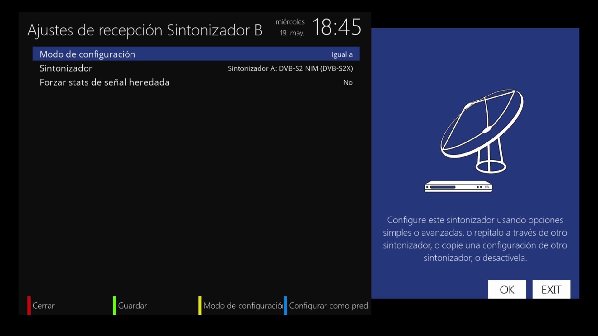 Ahora configuramos tuner B: