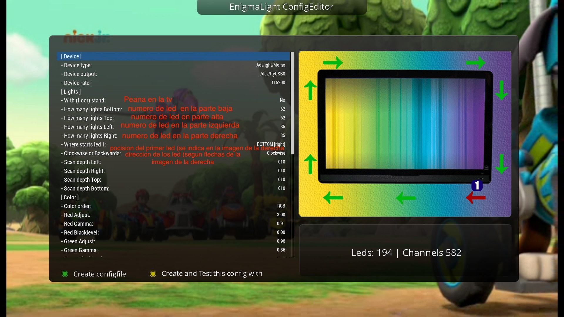 Una vez hemos accedido al plugin accedemos al confi editor, y lo configuramos según hemos puesto los led, tanto el numero como la dirección de la instalación