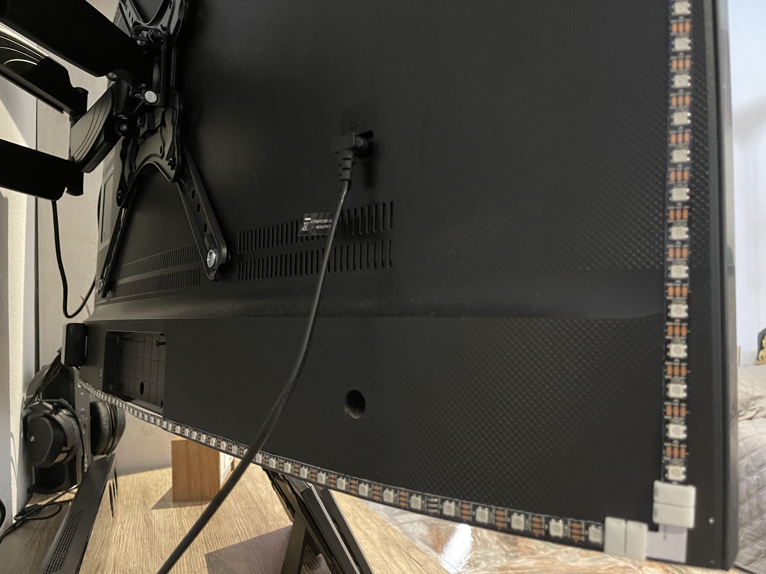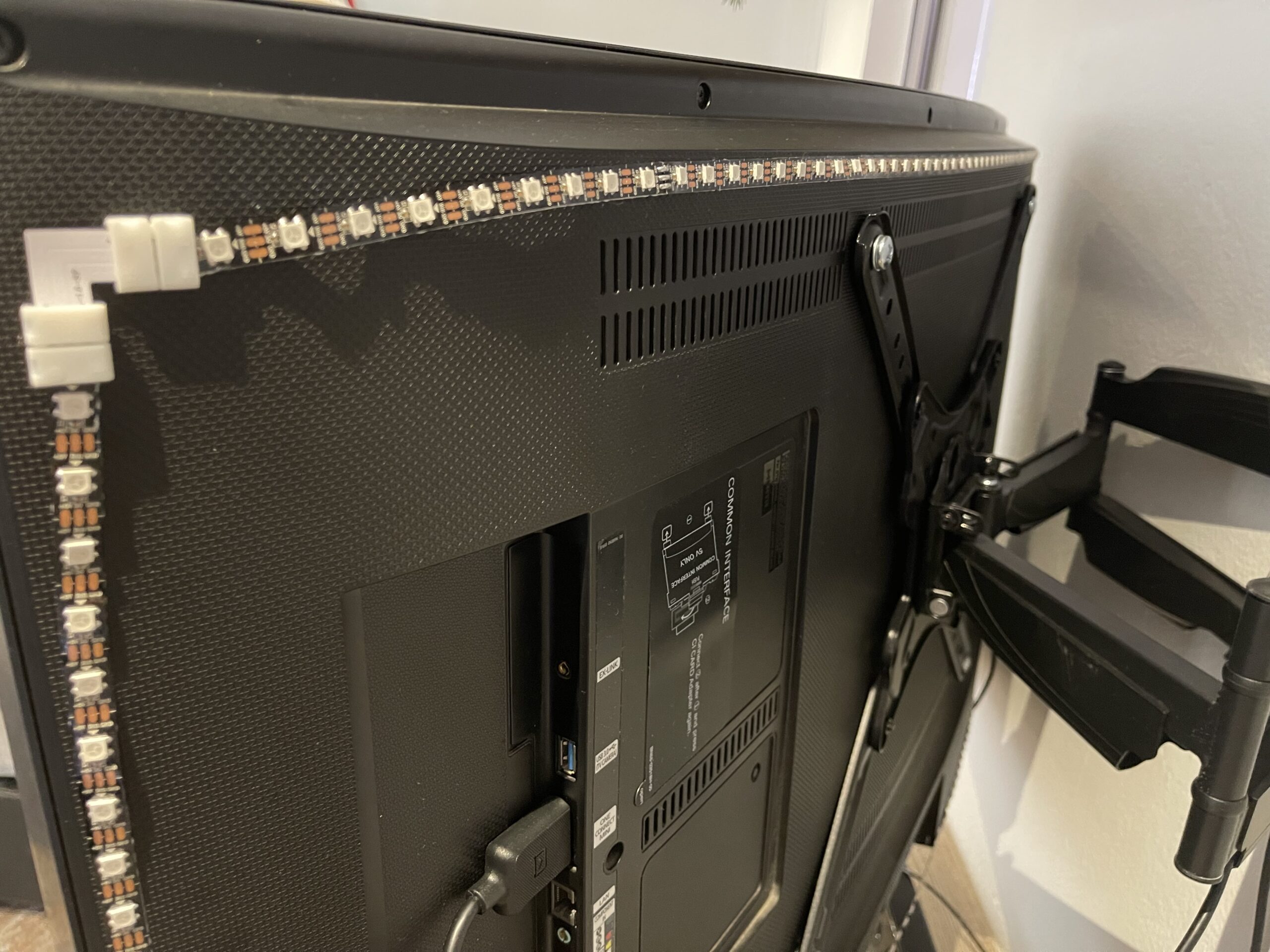 Conviene tener presente que los leds no deben estar situados muy al borde de los lados del televisor porque, de lo contrario, cuando se enciendan veremos la luz de cada led y no disfrutaremos de un efecto de luces difuminado, que es precisamente lo que queremos conseguir.