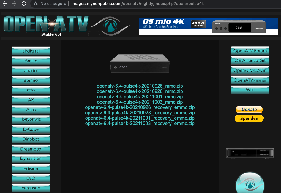 Para realizar la instalacion del bootloader recovery de nuestro receptor AB Pulse 4K es necesario previamente realizar la descarga de una imagen de instalación: