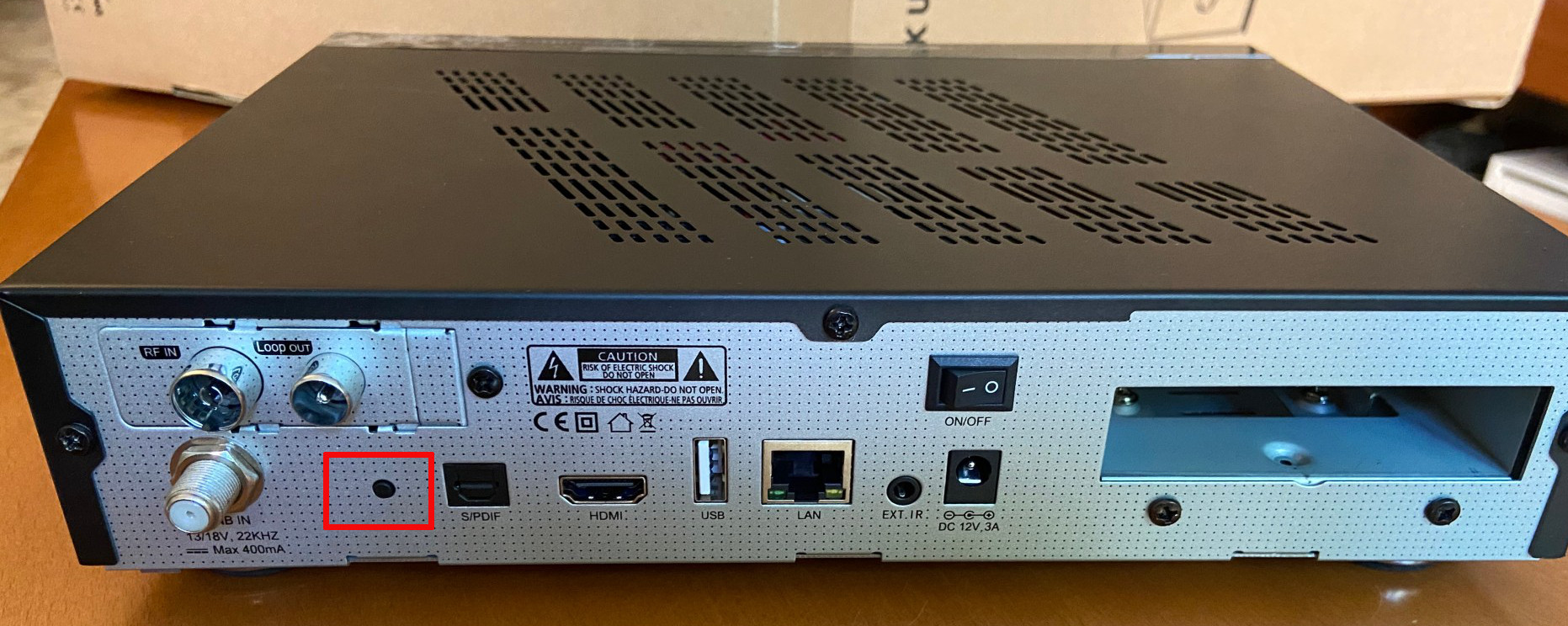 Ahora pulsamos (mantenemos pulsado el boton recovery del receptor ubicado en la parte posterior del mismo)