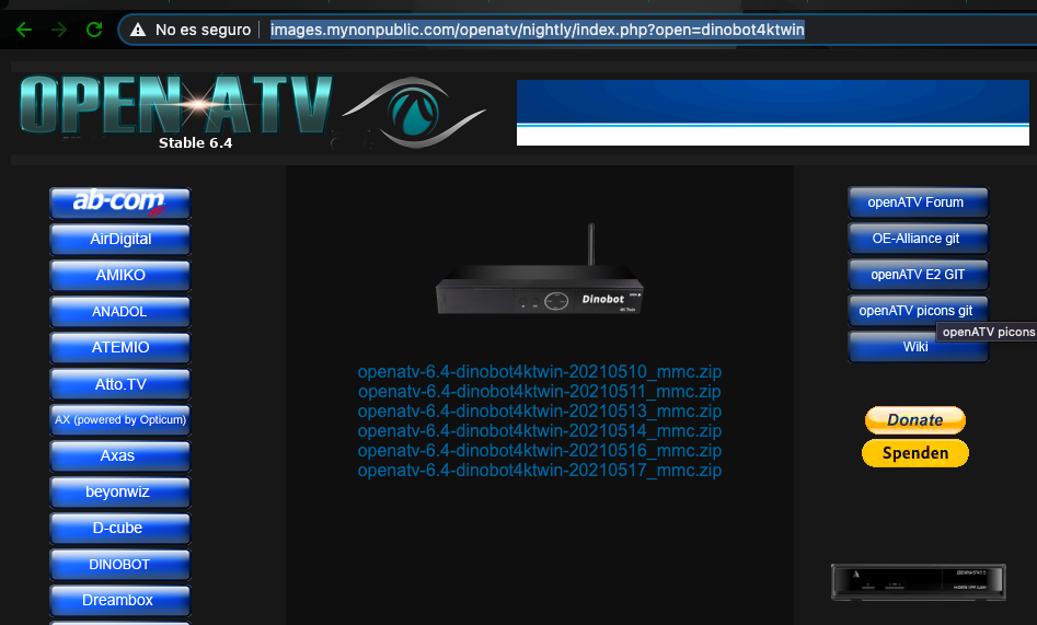 Para realizar actualización de nuestro receptor Dinobot 4K Twin es necesario previamente realizar la descarga de una imagen de instalación: